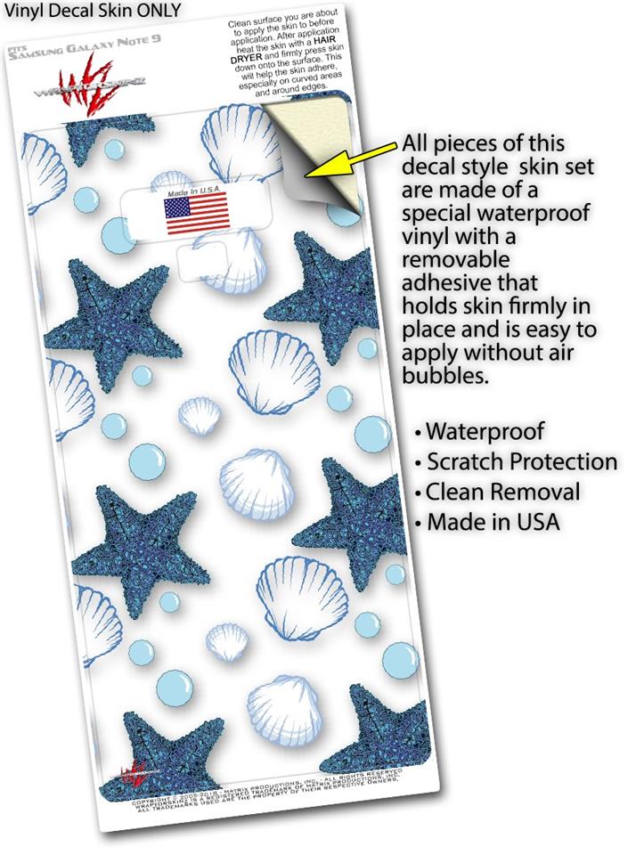 Decal style Skin Wrap compatible with Samsung Galaxy Note 9 Starfish and Sea Shells White