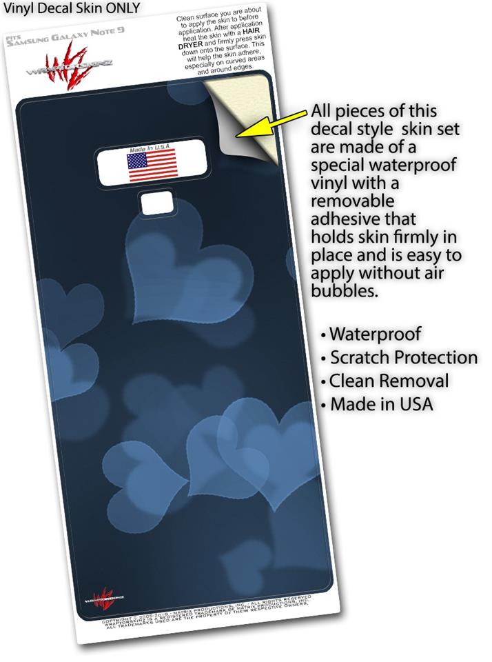 Decal style Skin Wrap compatible with Samsung Galaxy Note 9 Bokeh Hearts Blue