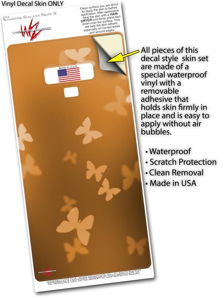 Decal style Skin Wrap compatible with Samsung Galaxy Note 9 Bokeh Butterflies Orange