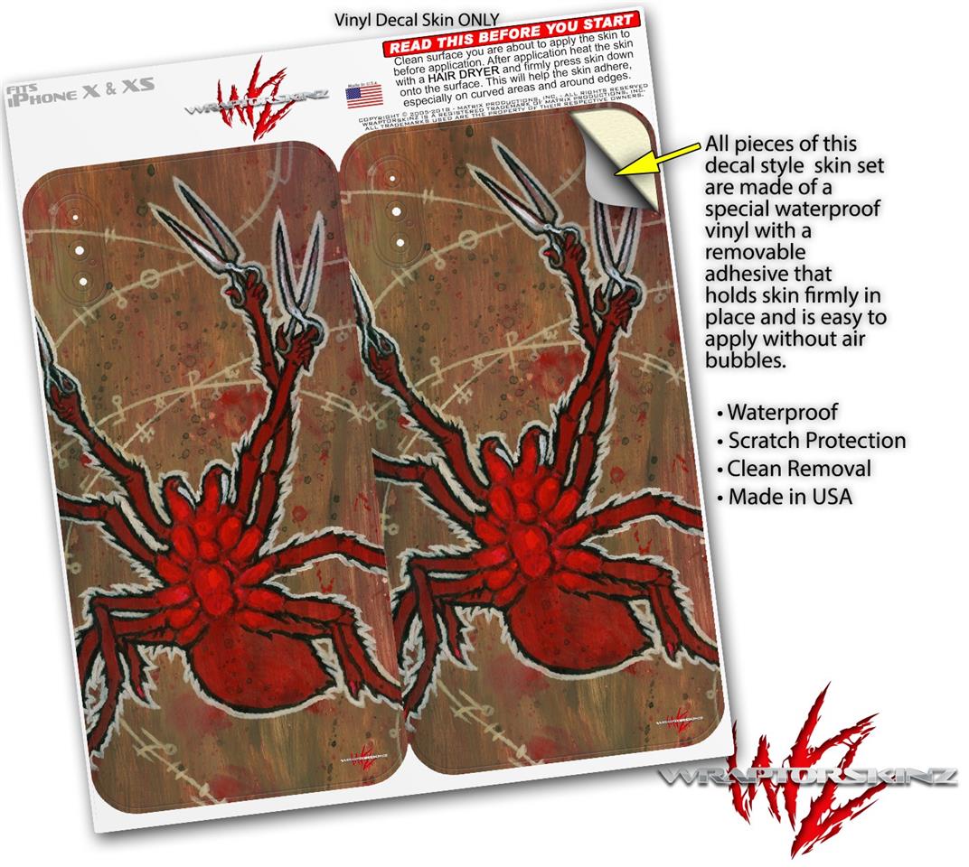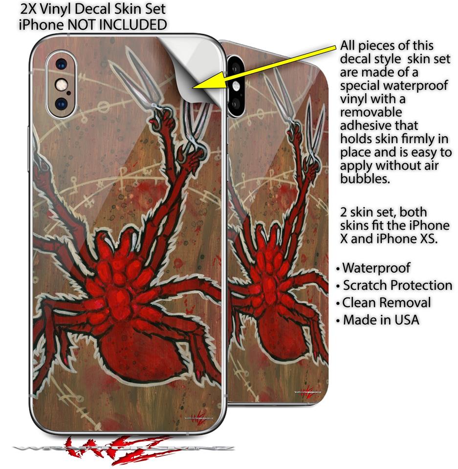 2 Decal style Skin Wraps set for Apple iPhone X and XS Weaving Spiders