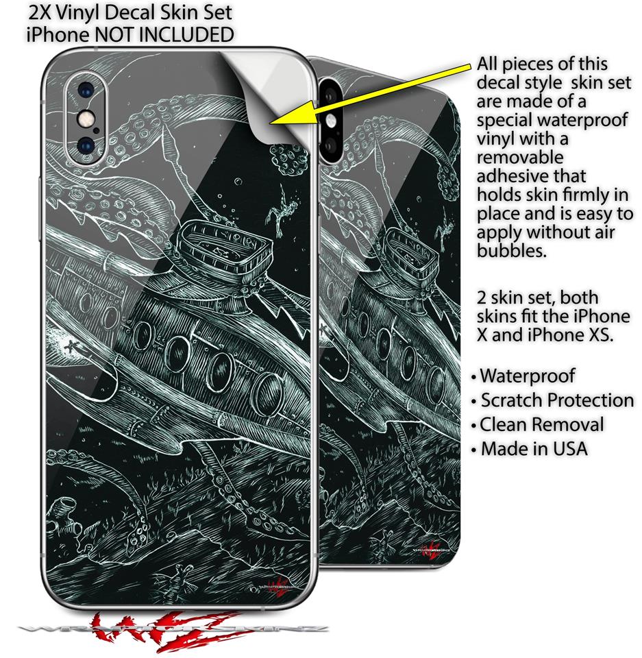 2 Decal style Skin Wraps set for Apple iPhone X and XS The Nautilus