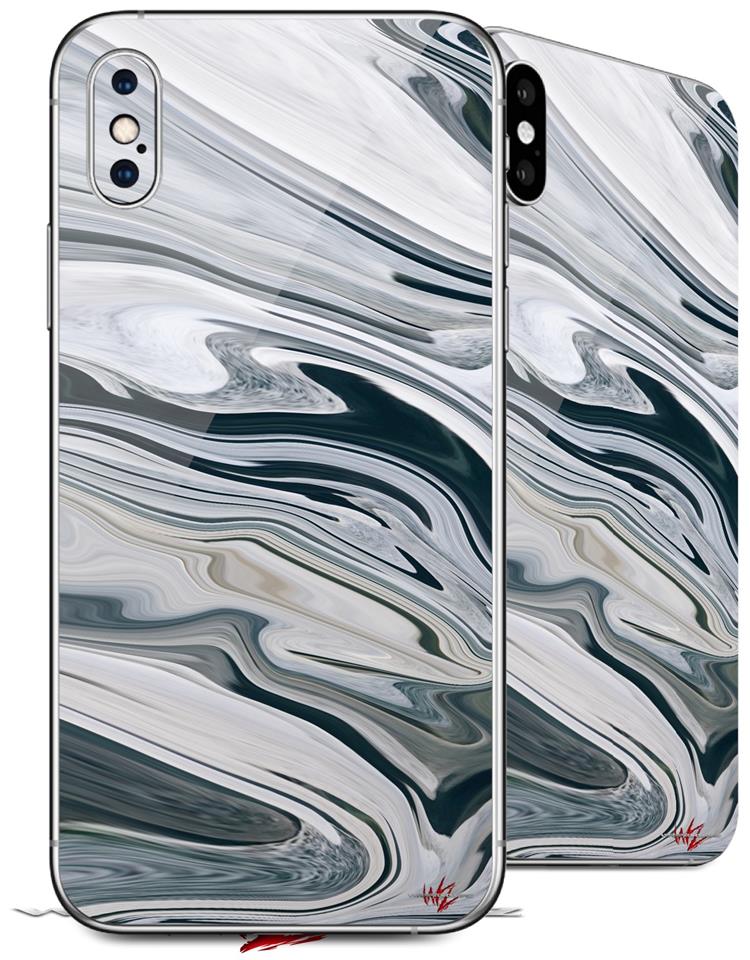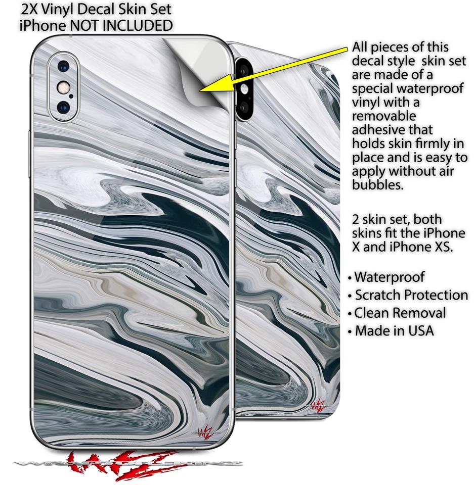 2 Decal style Skin Wraps set for Apple iPhone X and XS Blue Black Marble