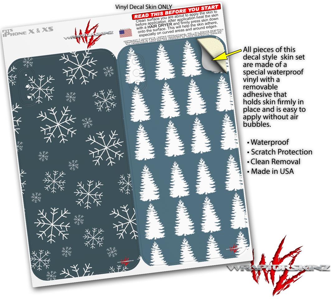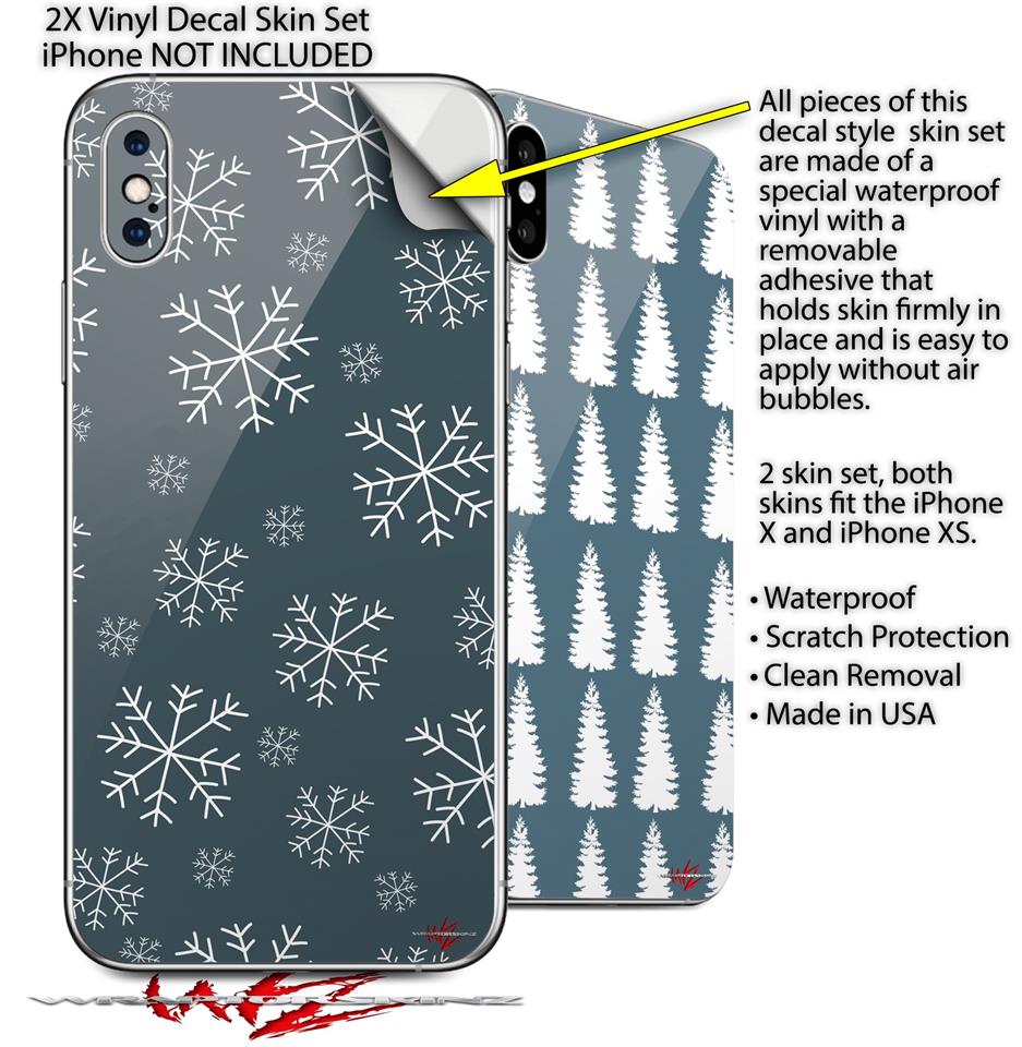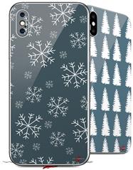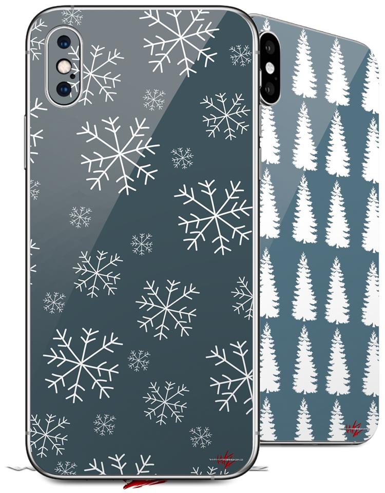 2 Decal style Skin Wraps set for Apple iPhone X and XS Winter Snow Dark Blue