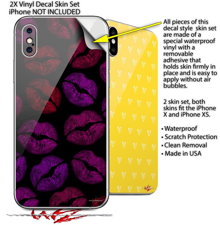 2 Decal style Skin Wraps set for Apple iPhone X and XS Red Pink And Black Lips