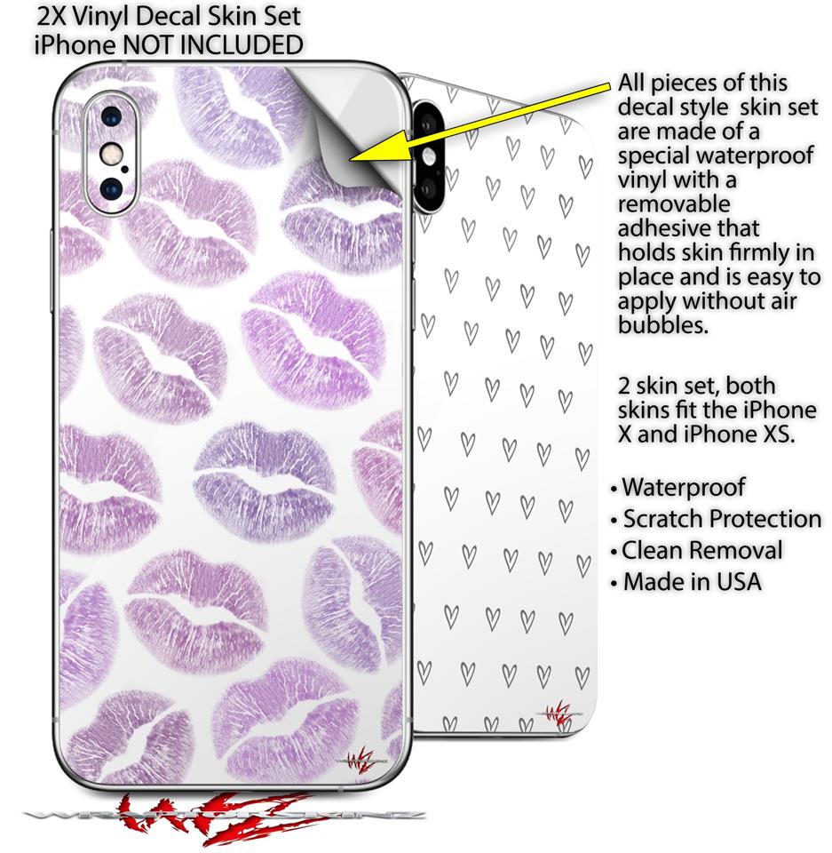 2 Decal style Skin Wraps set for Apple iPhone X and XS Purple Lips