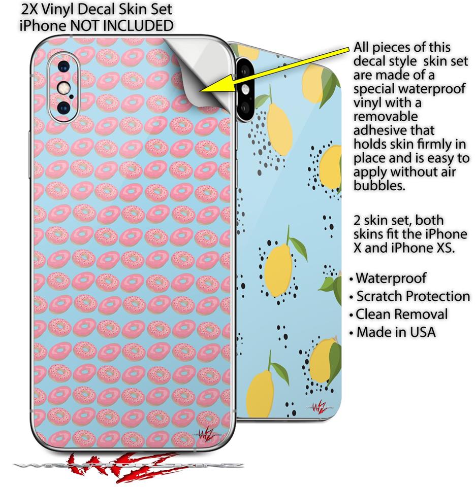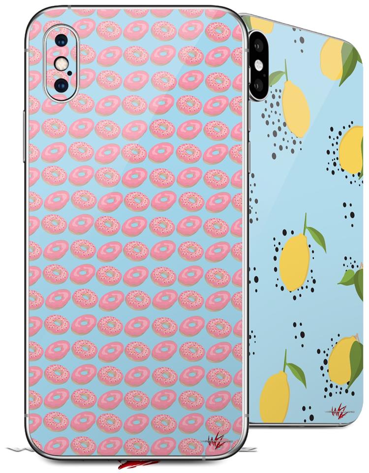 2 Decal style Skin Wraps set for Apple iPhone X and XS Donuts Blue