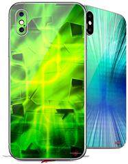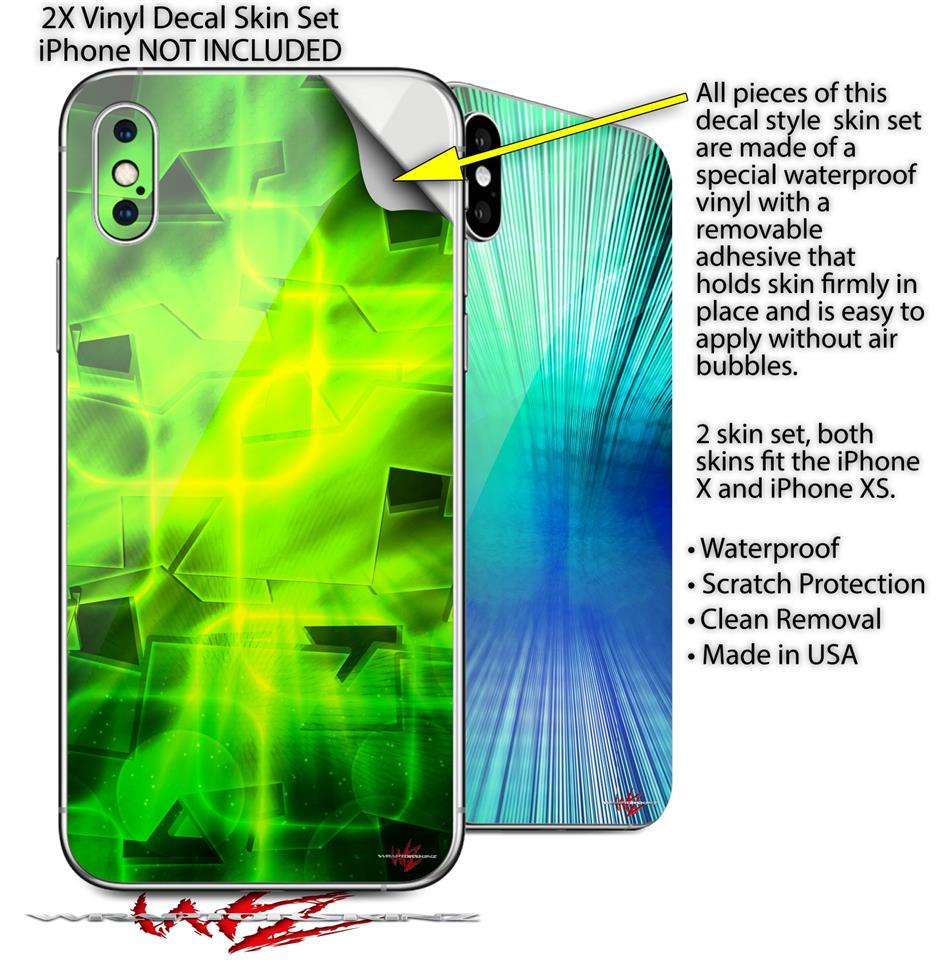 2 Decal style Skin Wraps set for Apple iPhone X and XS Cubic Shards Green