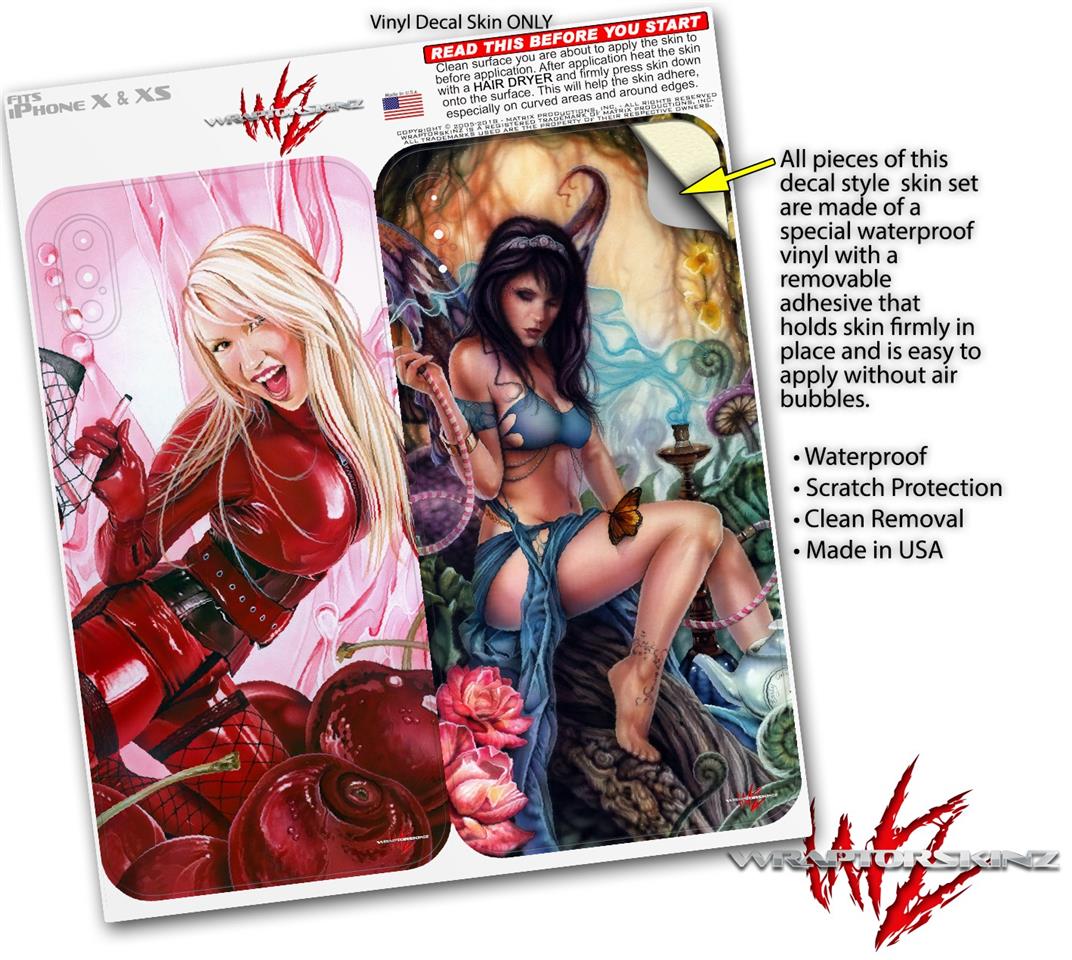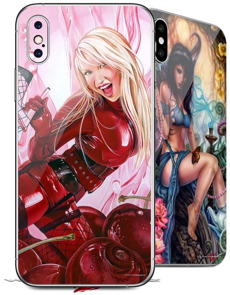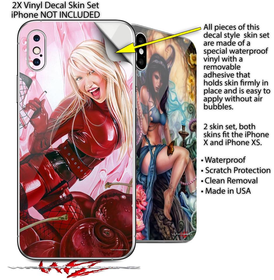 2 Decal style Skin Wraps set for Apple iPhone X and XS Cherry Bomb