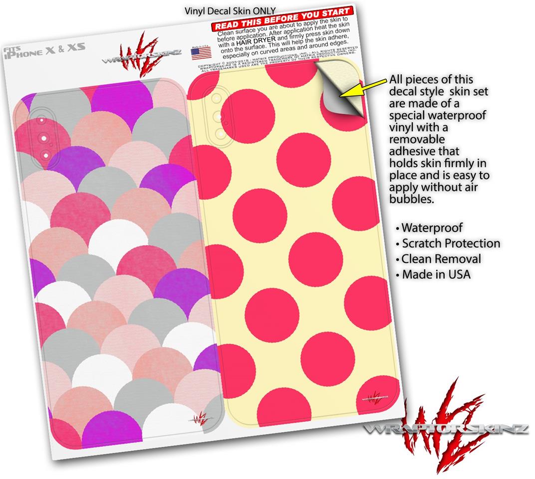 2 Decal style Skin Wraps set for Apple iPhone X and XS Brushed Circles Pink