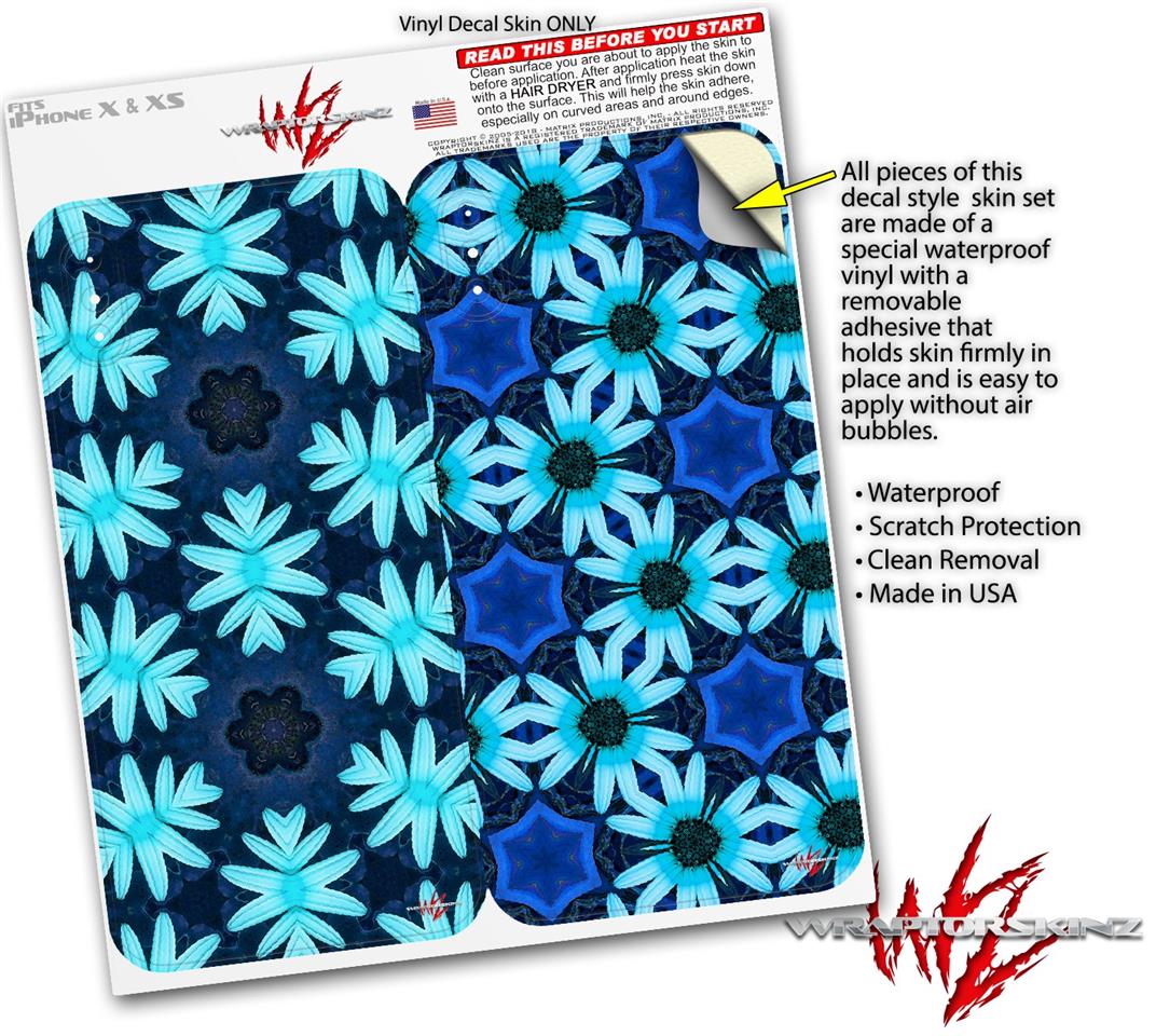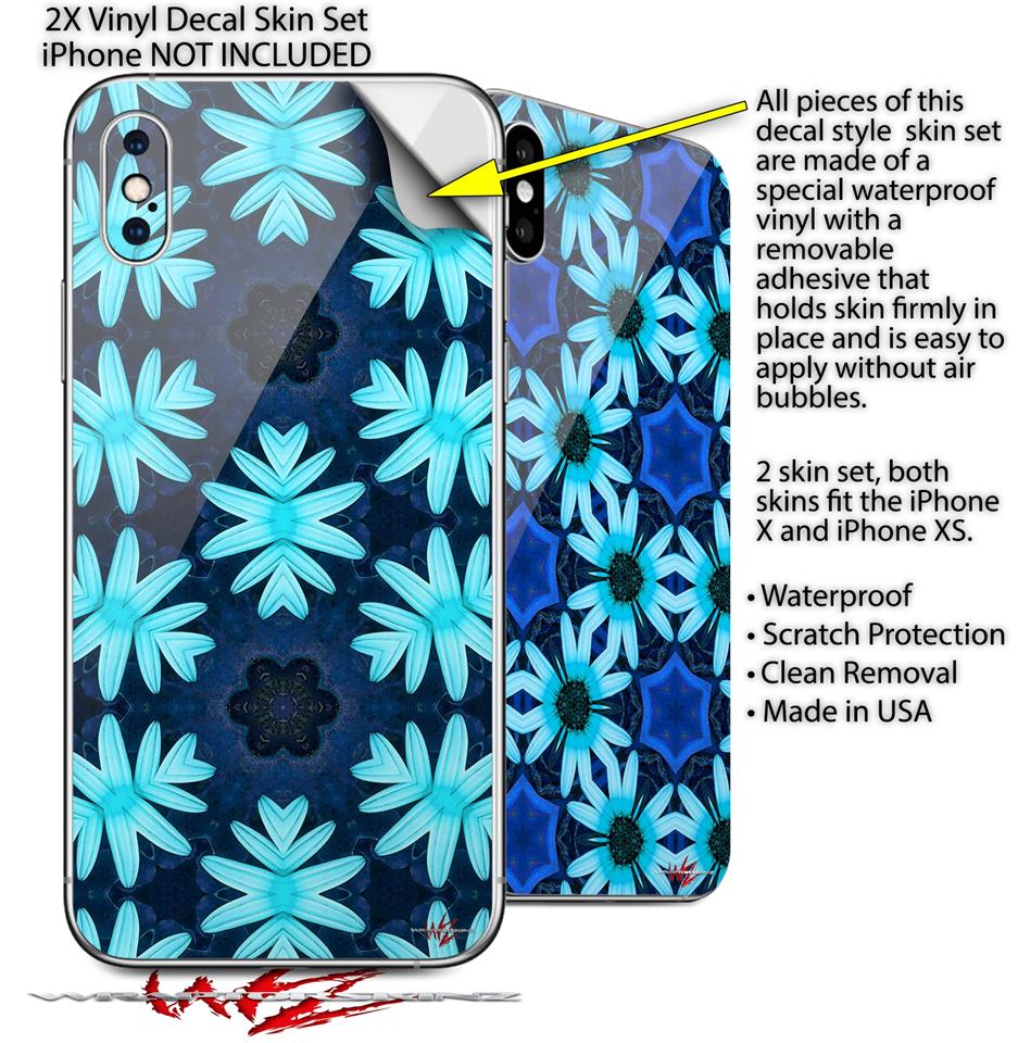 2 Decal style Skin Wraps set for Apple iPhone X and XS Abstract Floral Blue