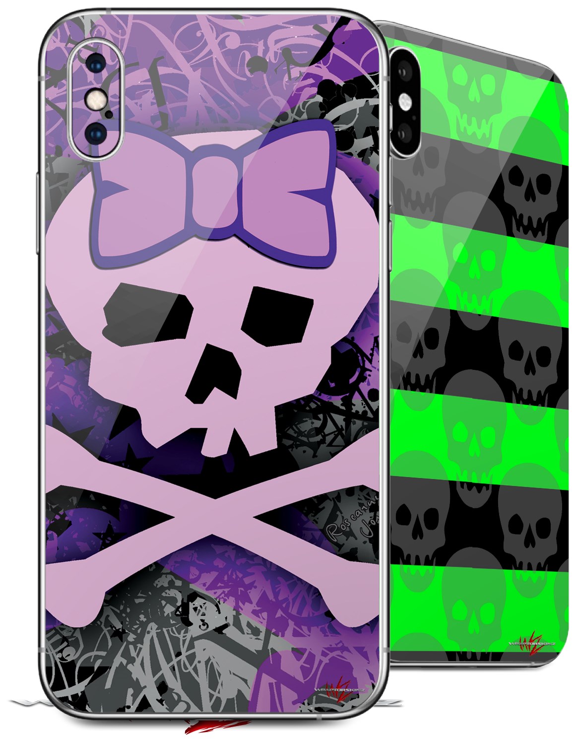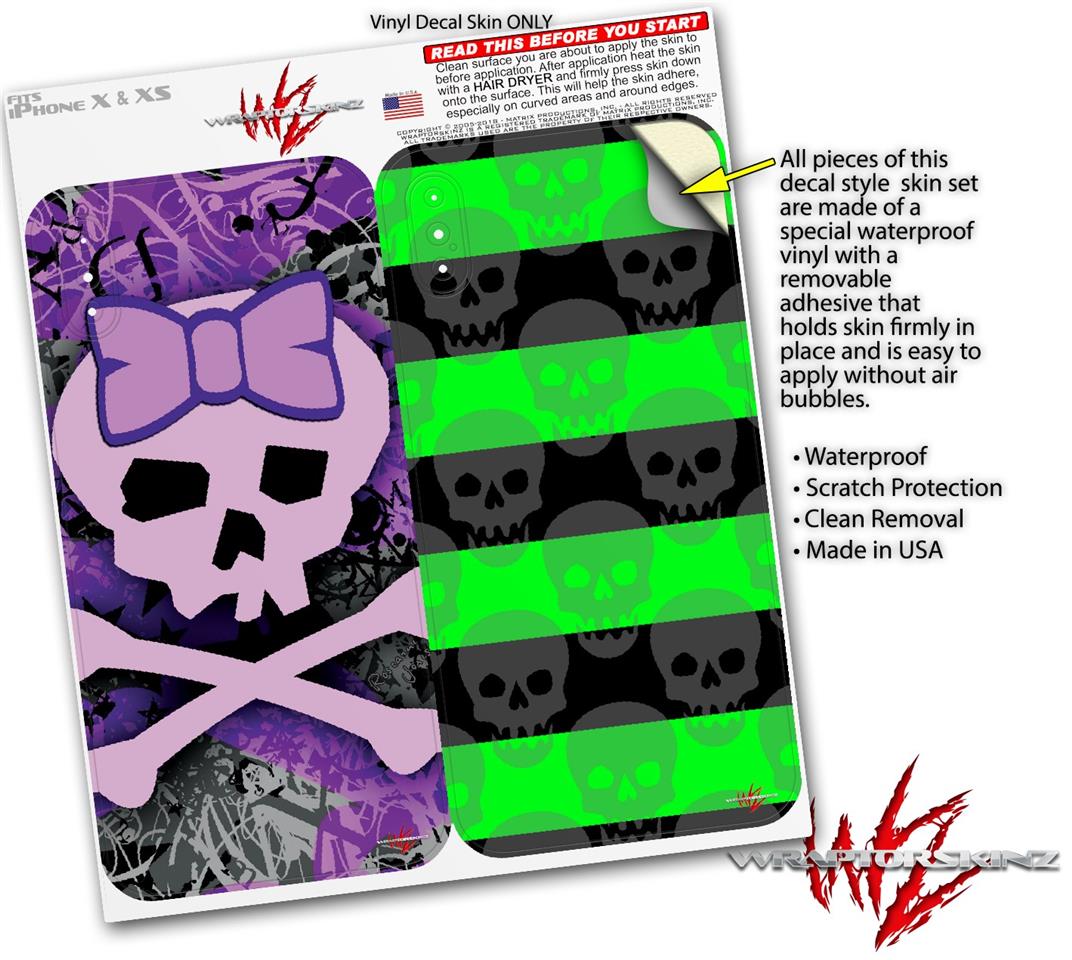 2 Decal style Skin Wraps set for Apple iPhone X and XS Purple Girly Skull