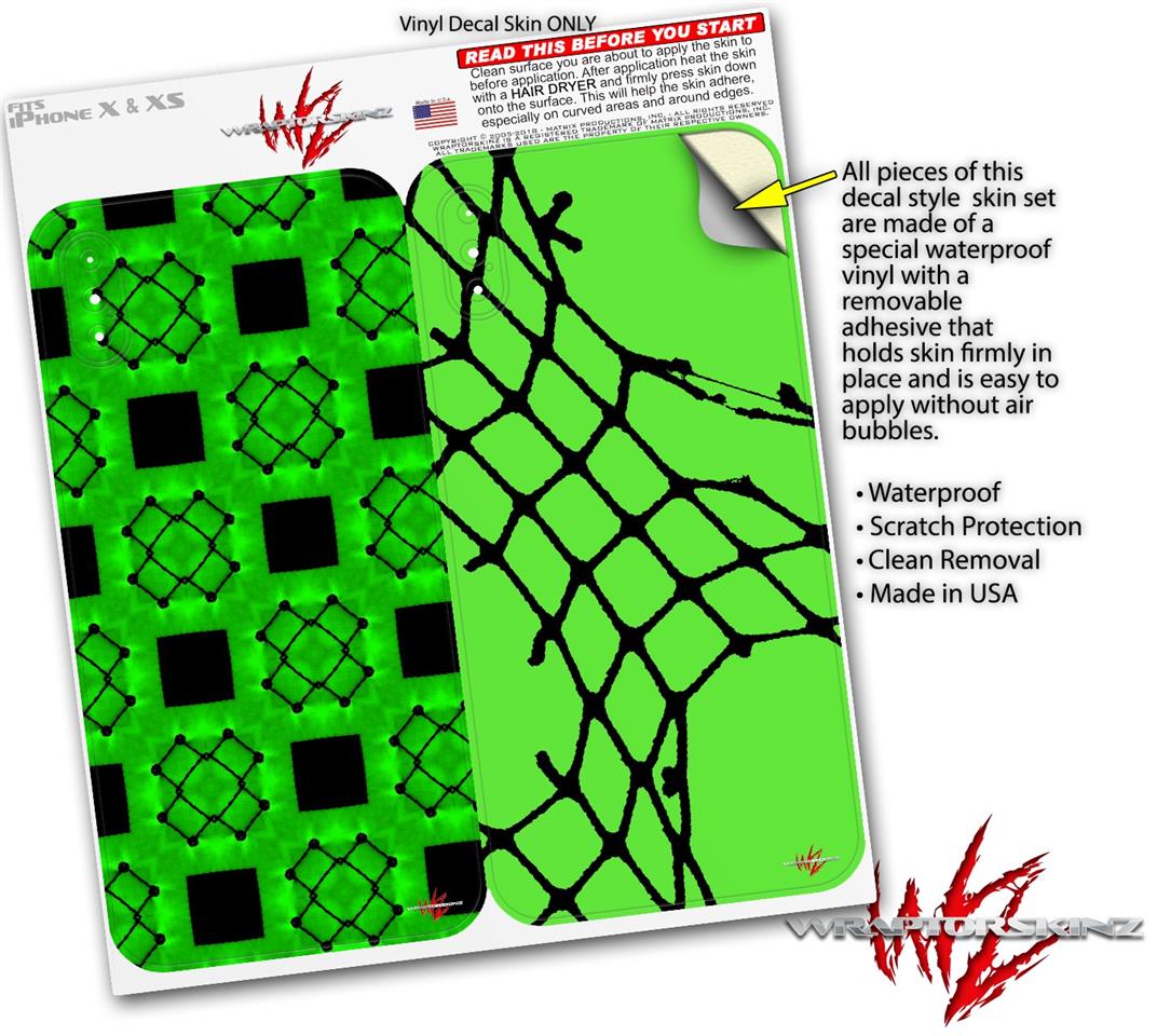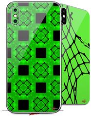 2 Decal style Skin Wraps set for Apple iPhone X and XS Criss Cross Green