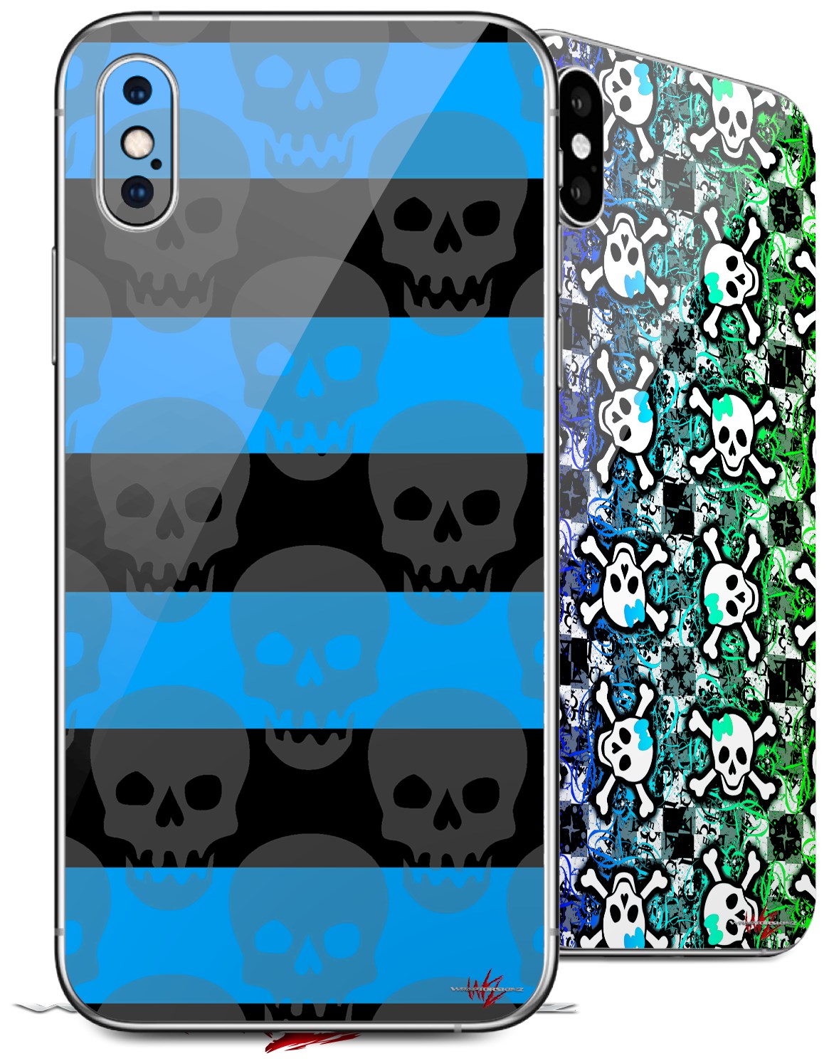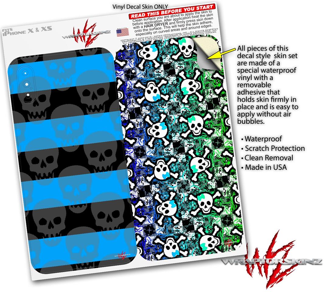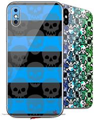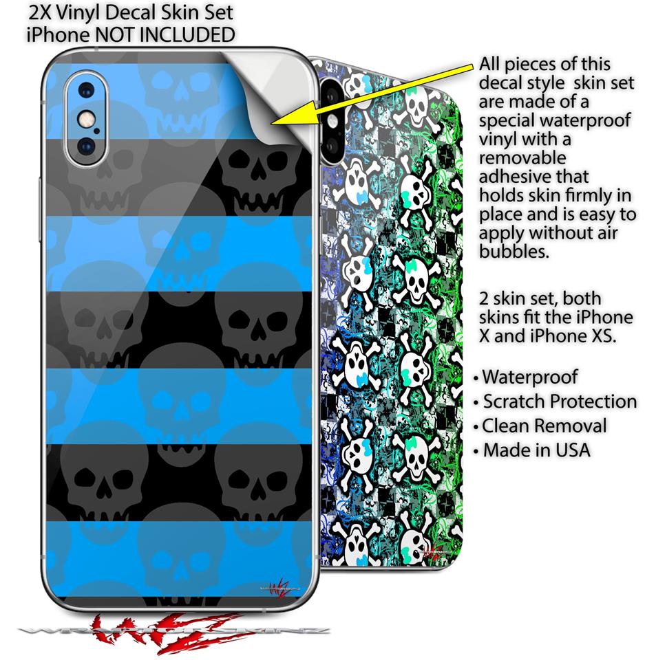 2 Decal style Skin Wraps set for Apple iPhone X and XS Skull Stripes Blue