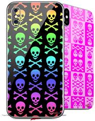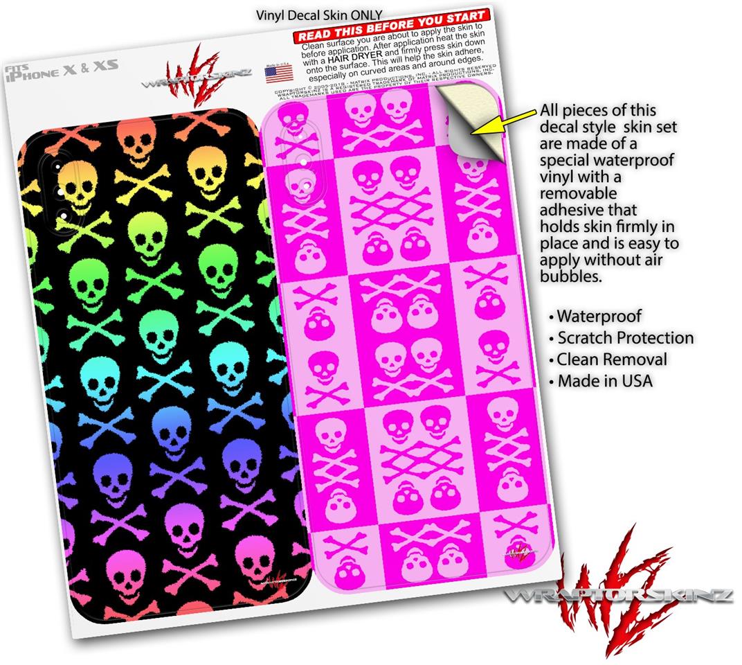 2 Decal style Skin Wraps set for Apple iPhone X and XS Skull and Crossbones Rainbow