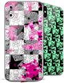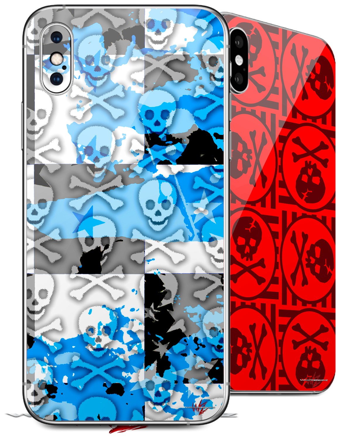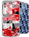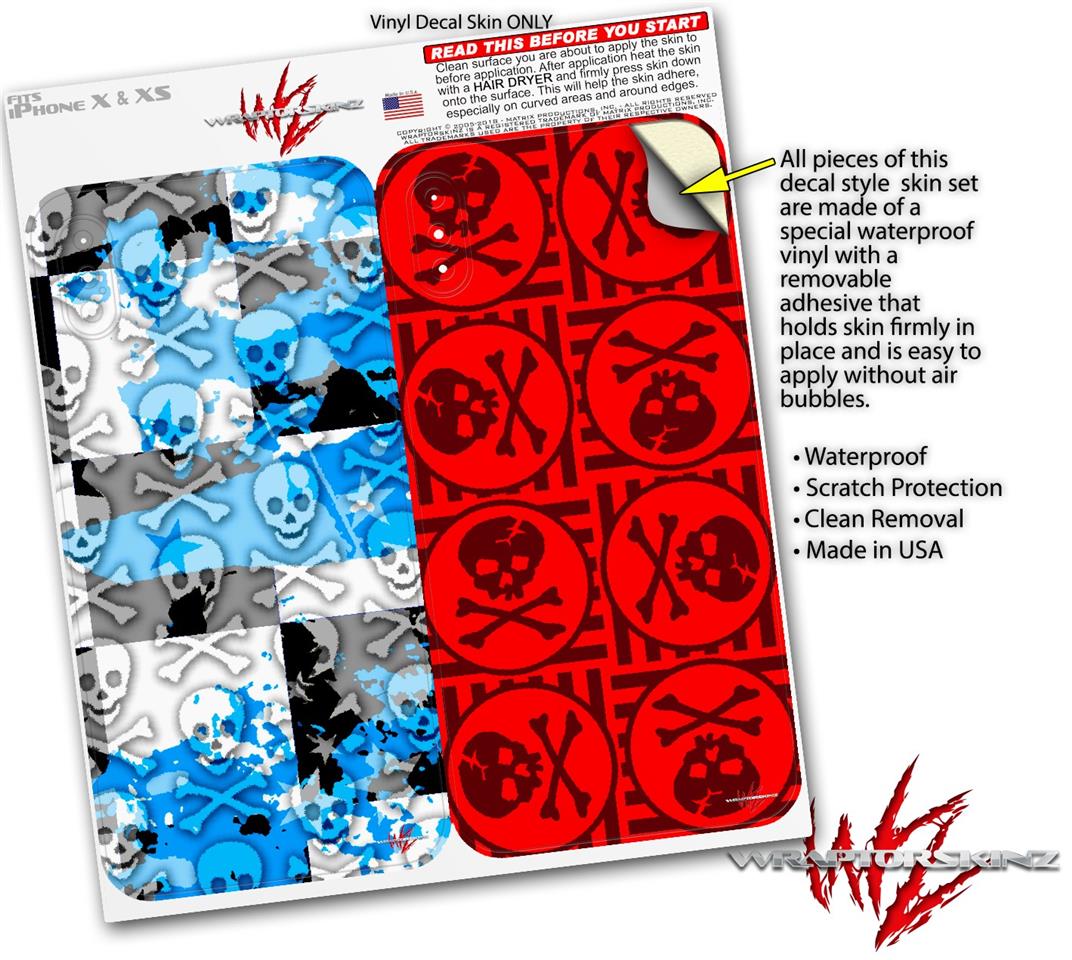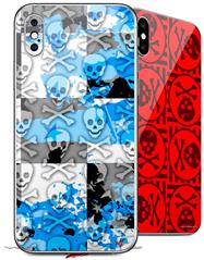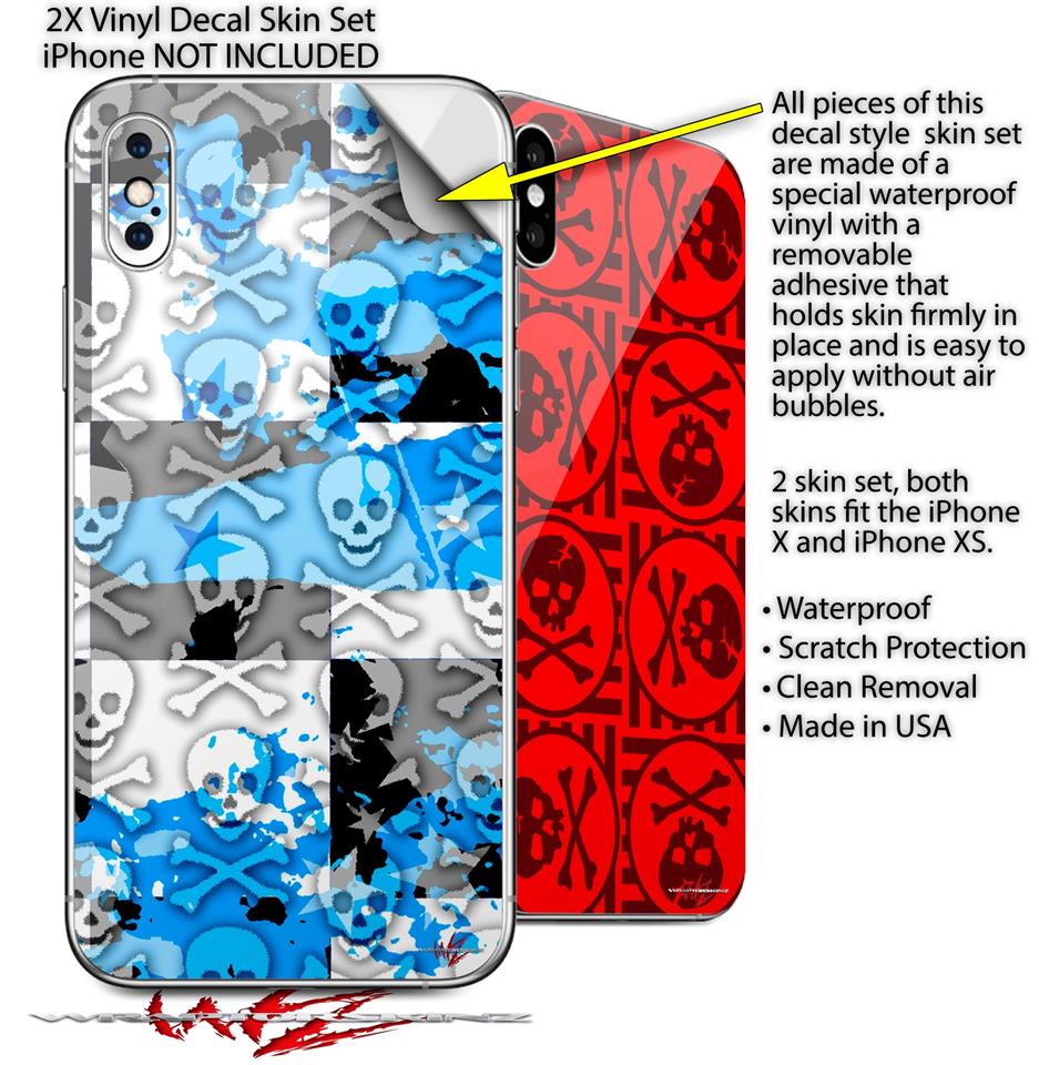 2 Decal style Skin Wraps set for Apple iPhone X and XS Checker Skull Splatter Blue