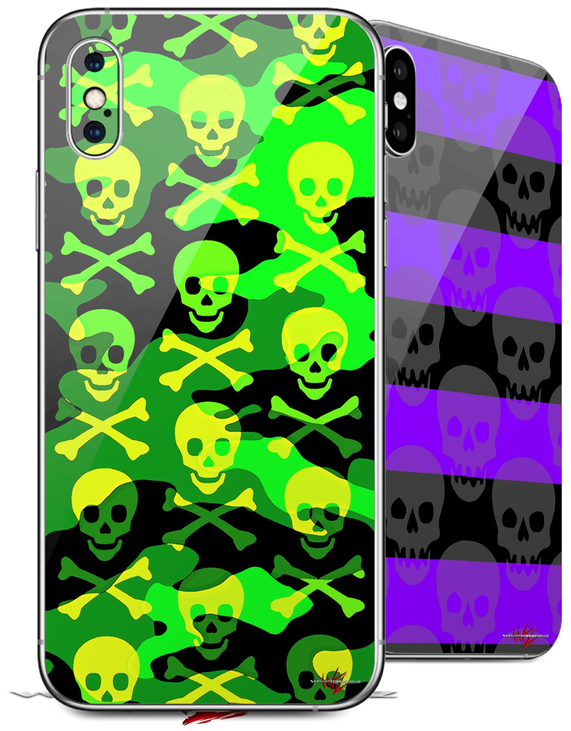 2 Decal style Skin Wraps set for Apple iPhone X and XS Skull Camouflage