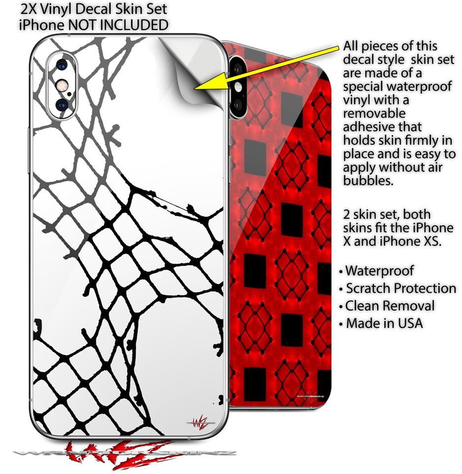 2 Decal style Skin Wraps set for Apple iPhone X and XS Ripped Fishnets