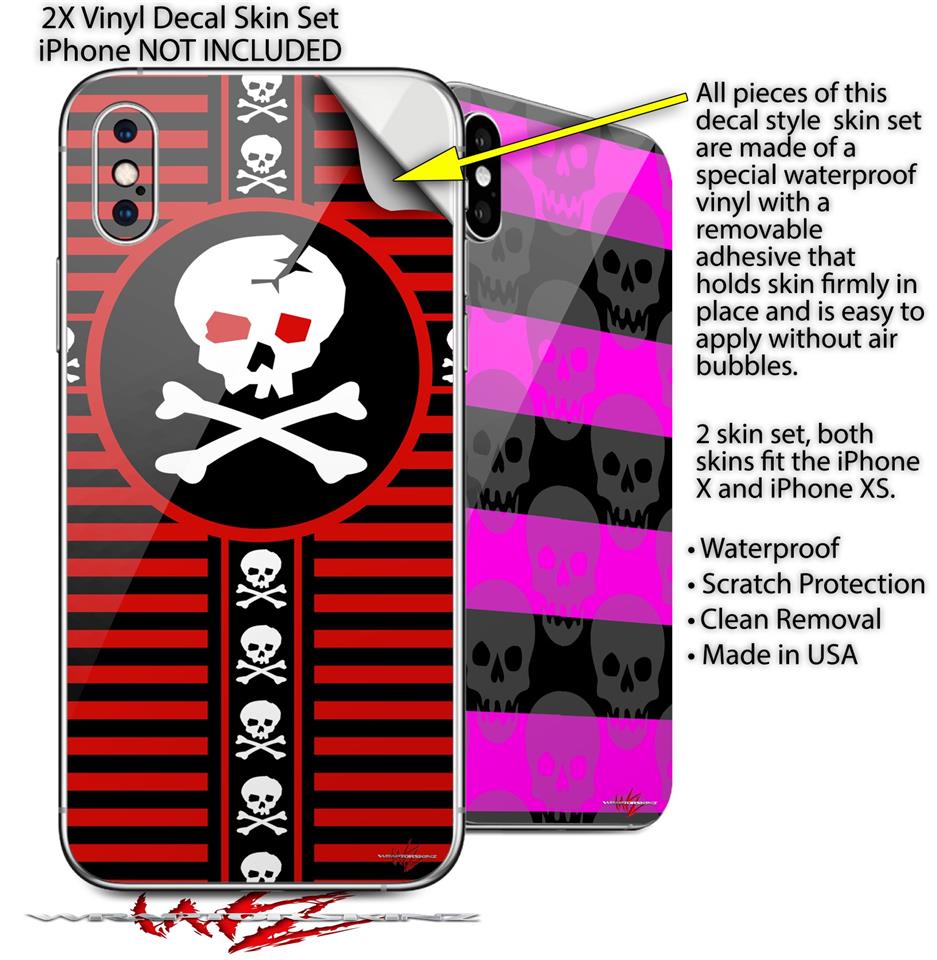 2 Decal style Skin Wraps set for Apple iPhone X and XS Skull Cross