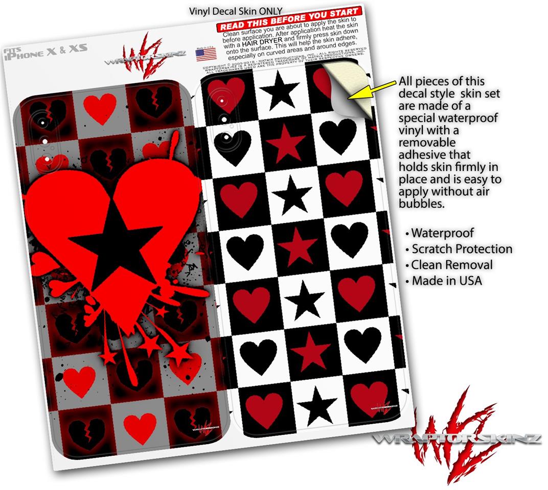 2 Decal style Skin Wraps set for Apple iPhone X and XS Emo Star Heart