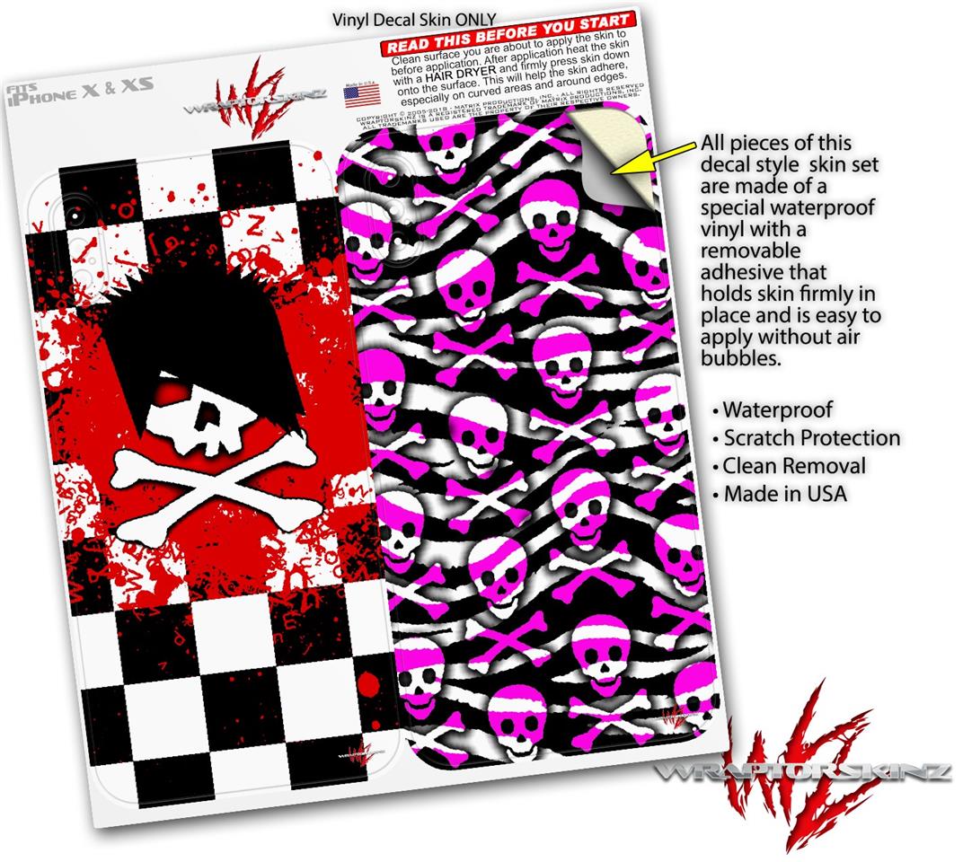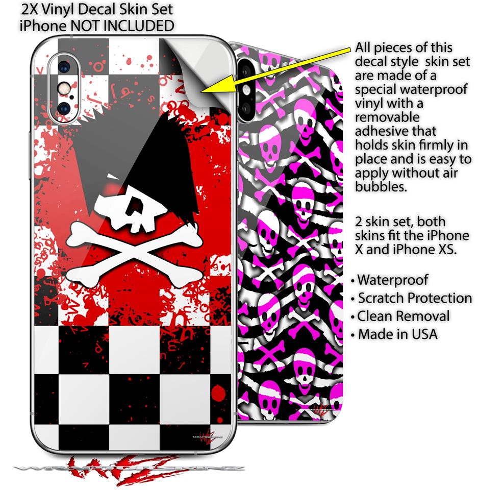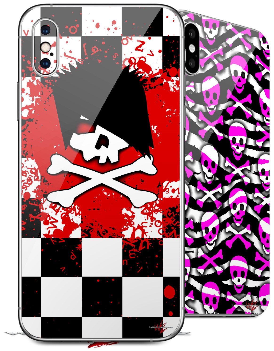 2 Decal style Skin Wraps set for Apple iPhone X and XS Emo Skull 5