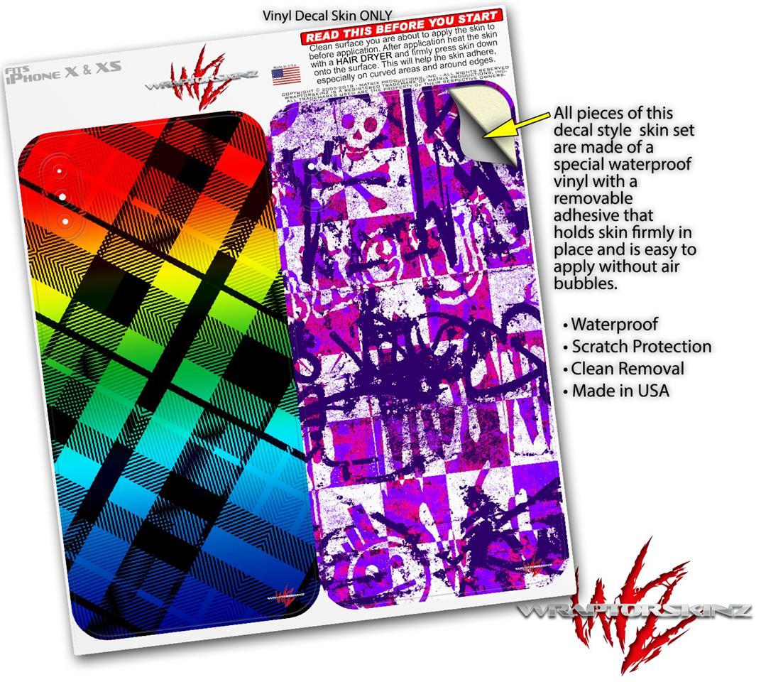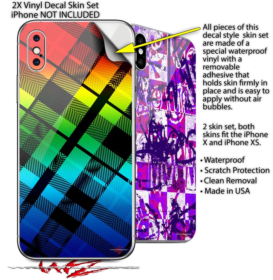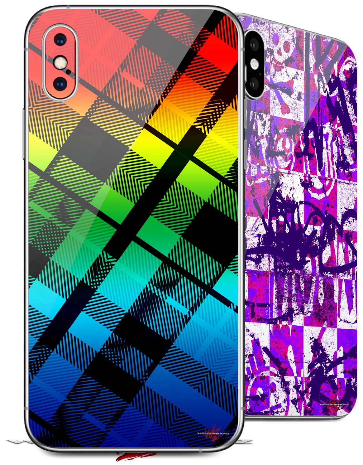 2 Decal style Skin Wraps set for Apple iPhone X and XS Rainbow Plaid