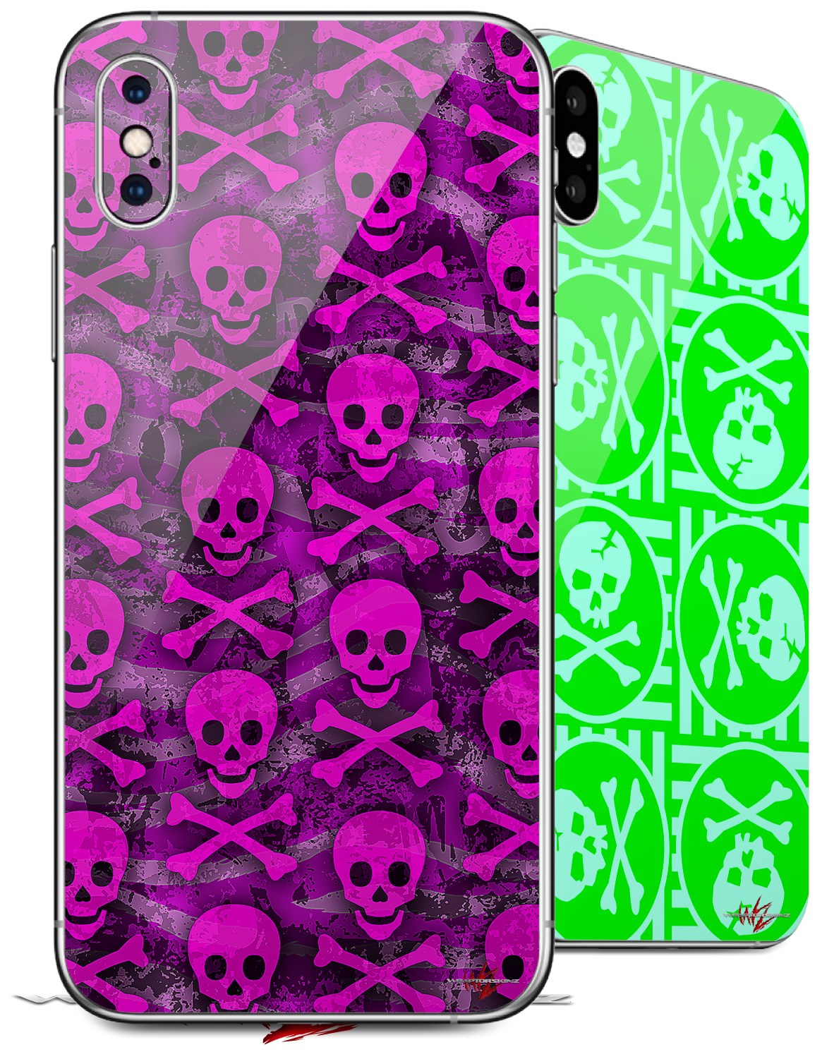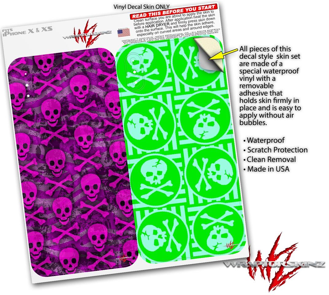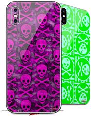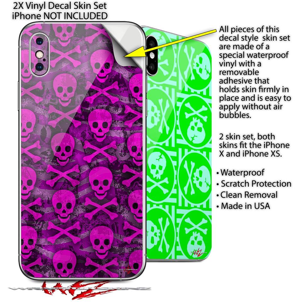 2 Decal style Skin Wraps set for Apple iPhone X and XS Pink Skull Bones