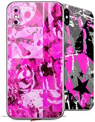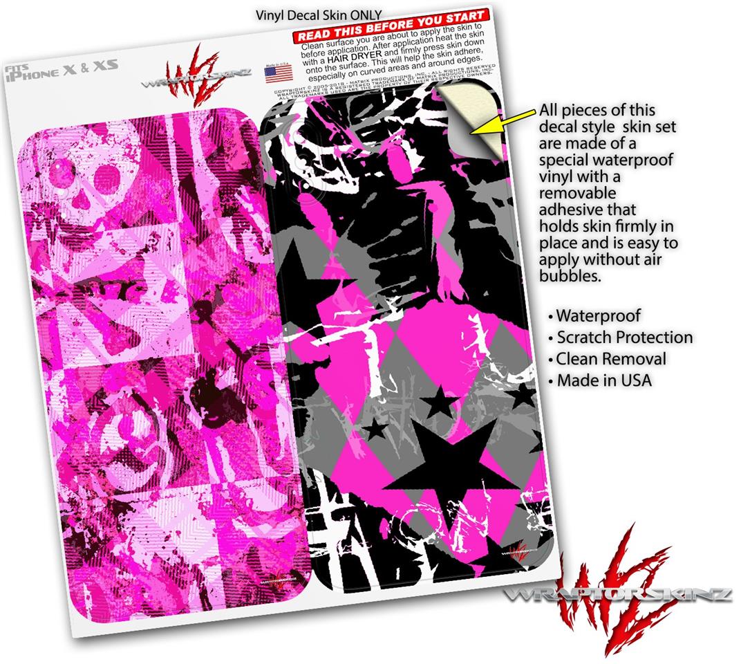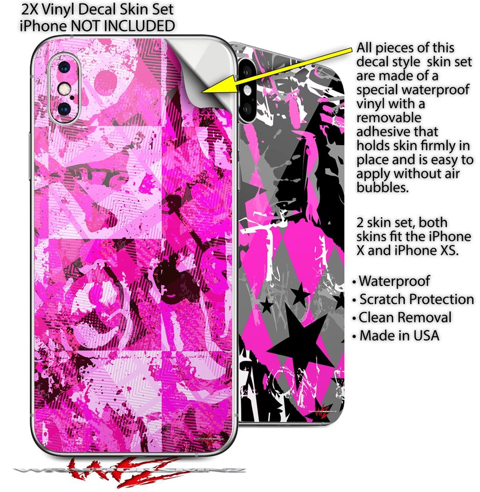 2 Decal style Skin Wraps set for Apple iPhone X and XS Pink Plaid Graffiti