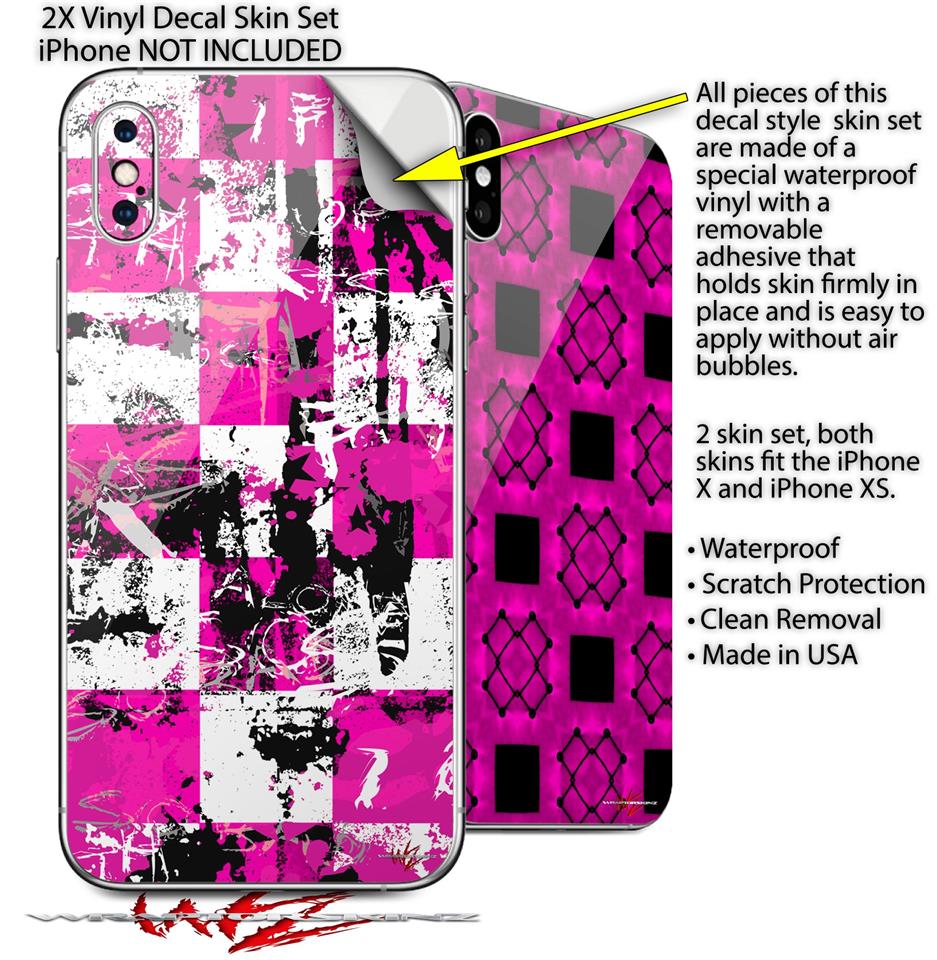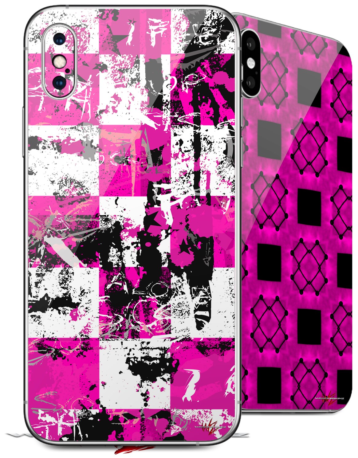 2 Decal style Skin Wraps set for Apple iPhone X and XS Pink Graffiti