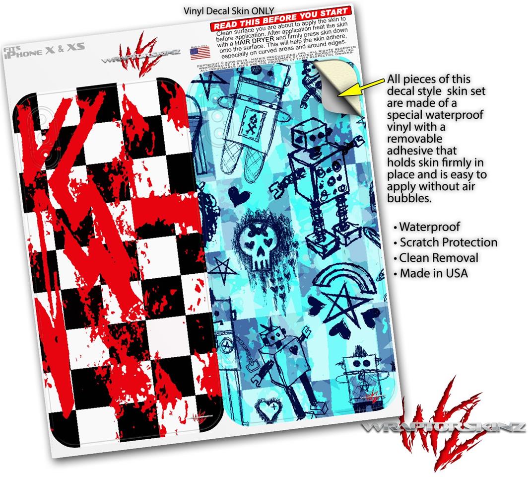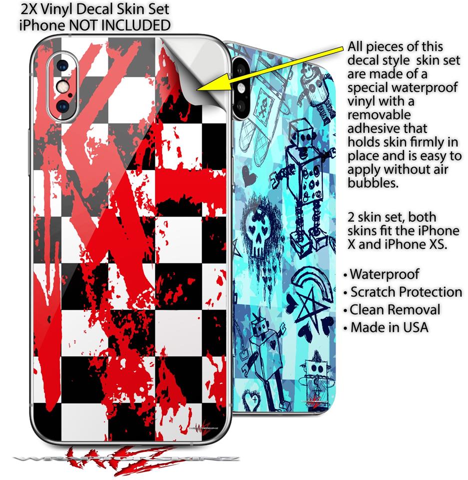 2 Decal style Skin Wraps set for Apple iPhone X and XS Checkerboard Splatter