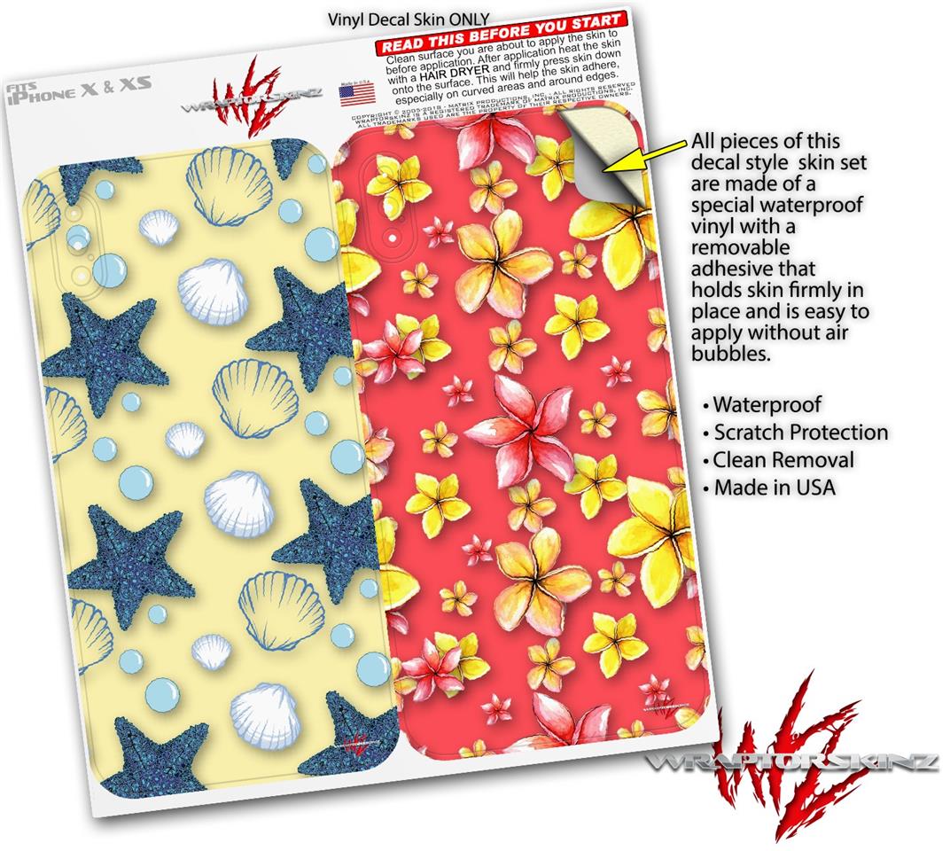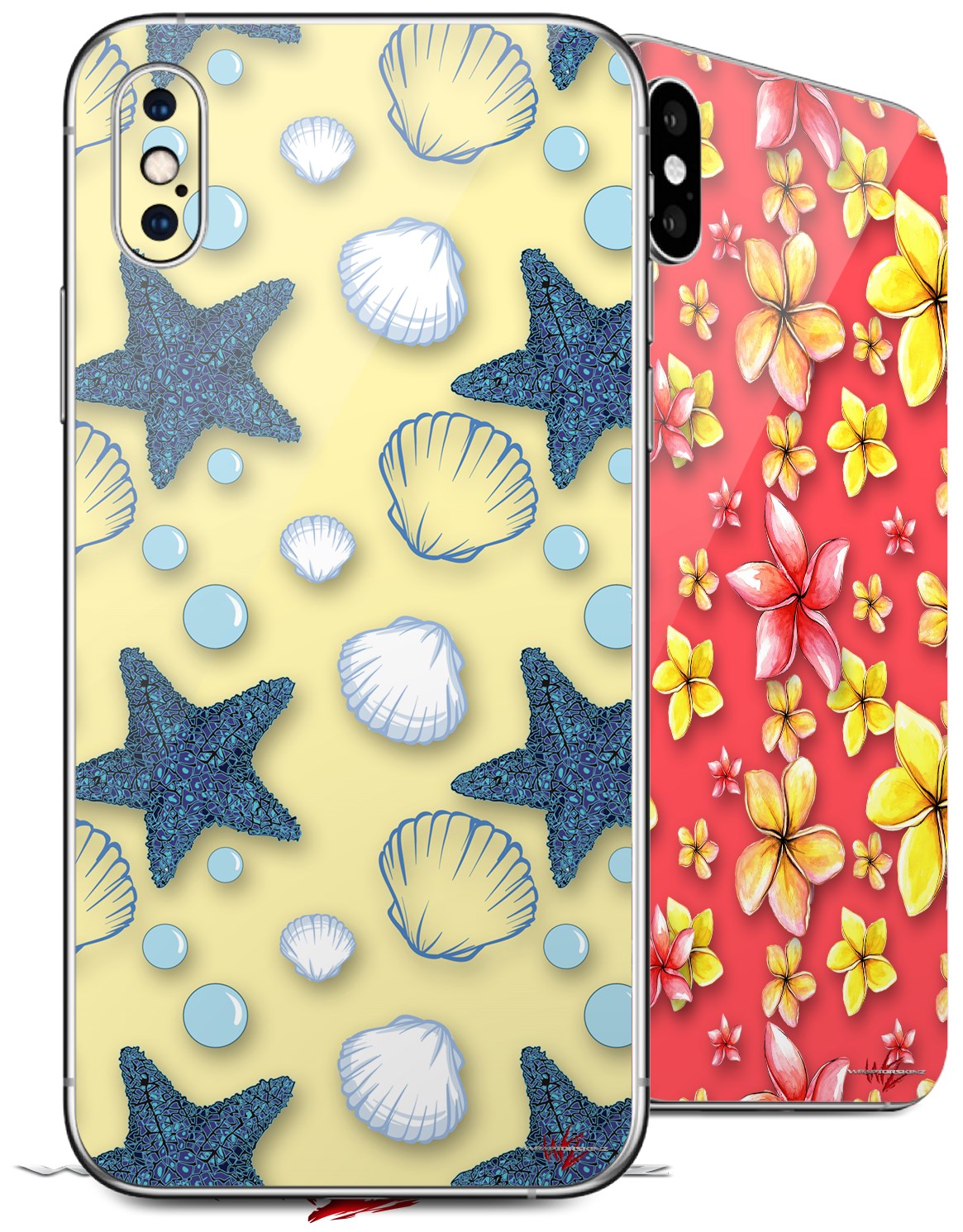 2 Decal style Skin Wraps set for Apple iPhone X and XS Starfish and Sea Shells Yellow Sunshine
