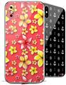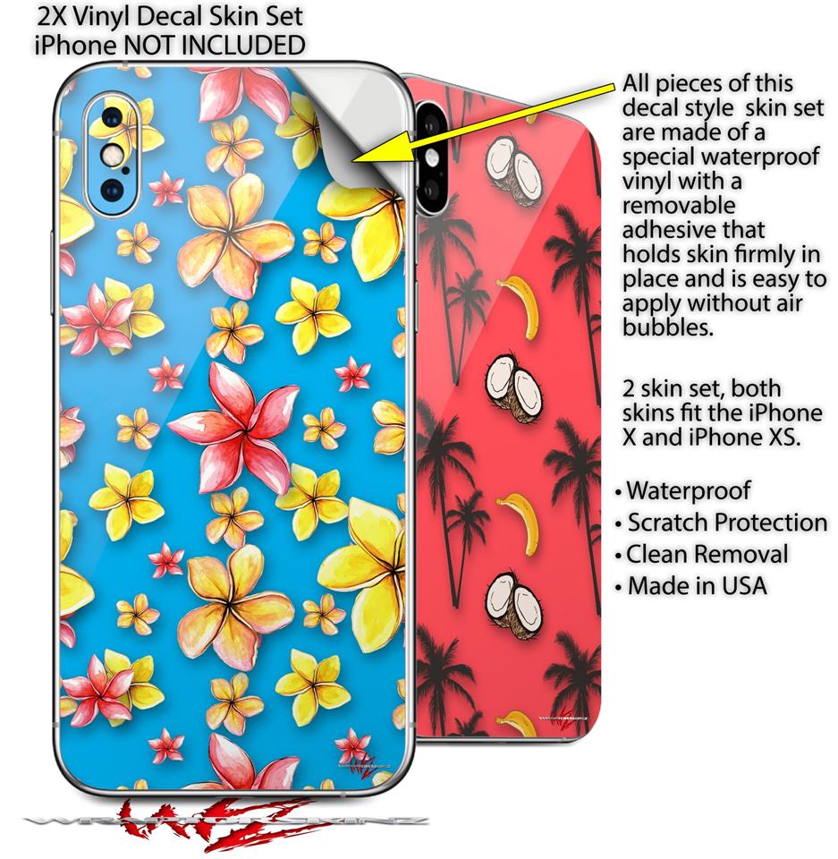 2 Decal style Skin Wraps set for Apple iPhone X and XS Beach Flowers Blue Medium