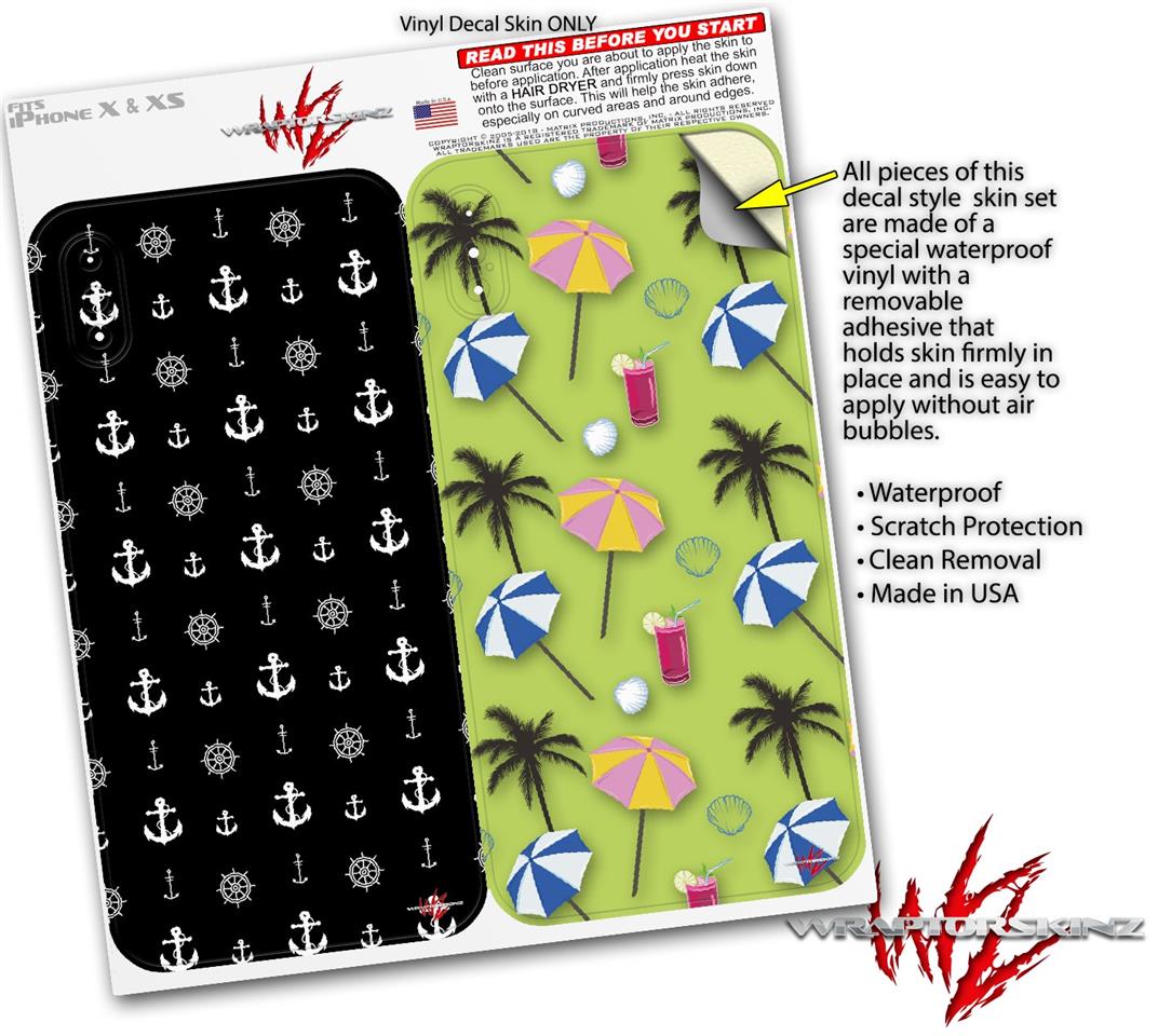 2 Decal style Skin Wraps set for Apple iPhone X and XS Nautical Anchors Away 02 Black