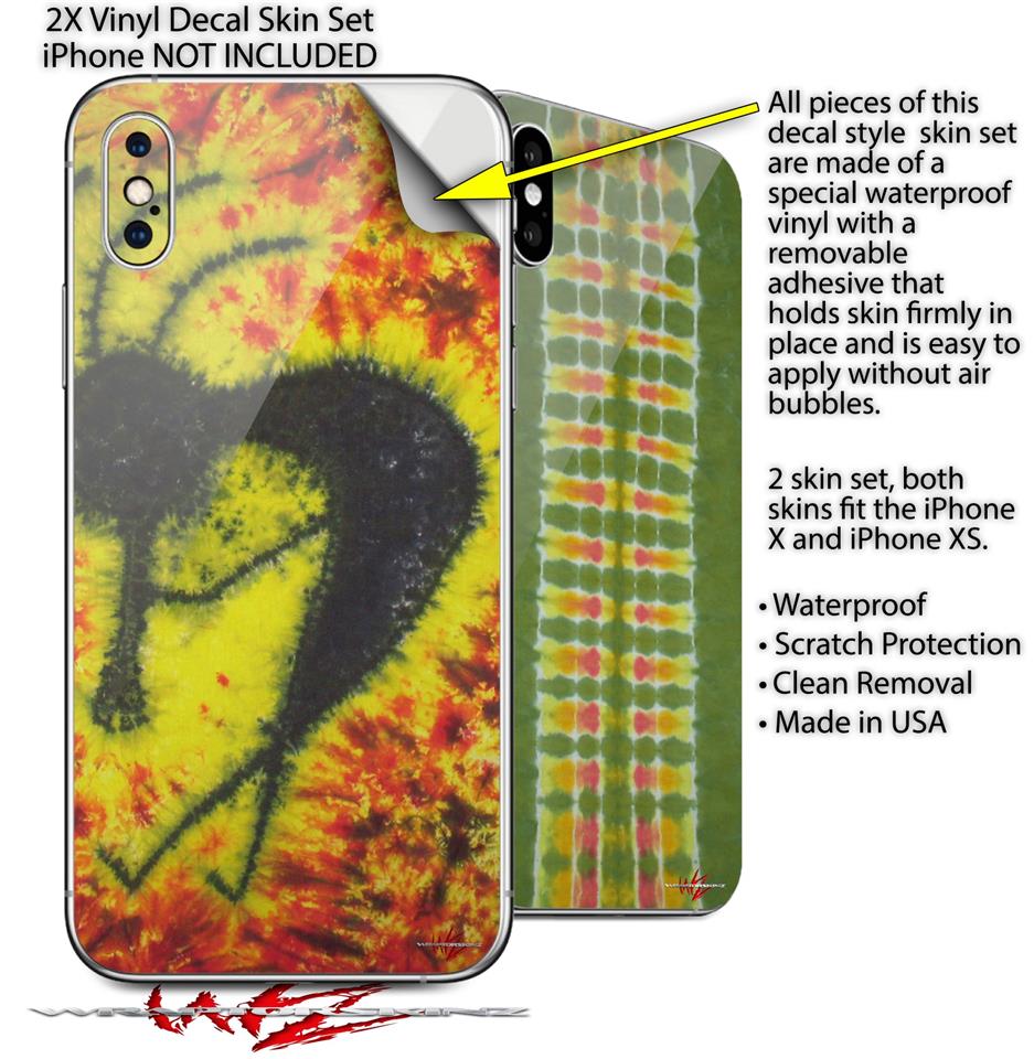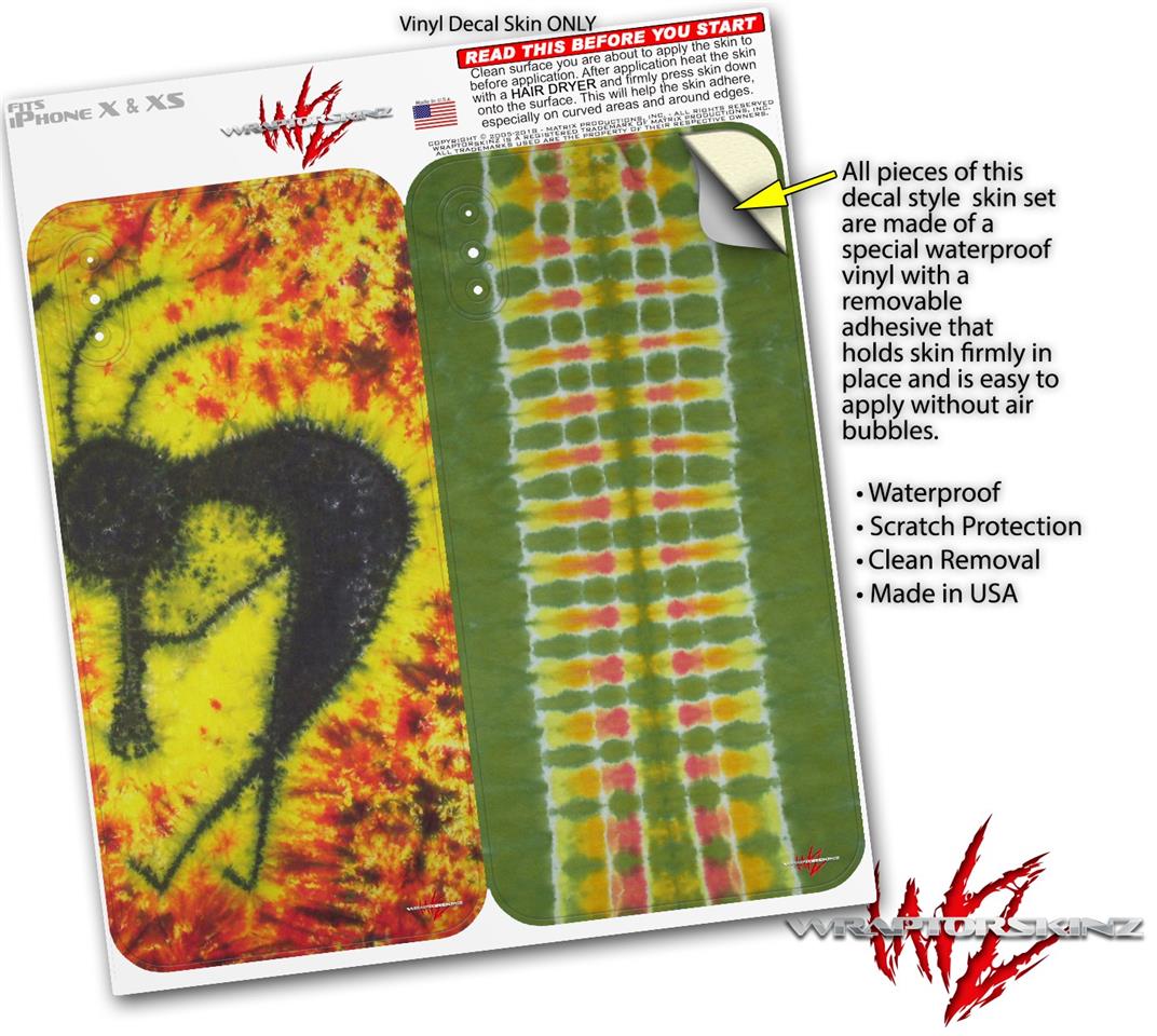 2 Decal style Skin Wraps set for Apple iPhone X and XS Tie Dye Kokopelli