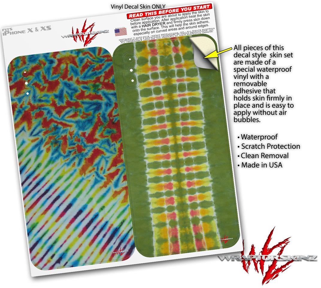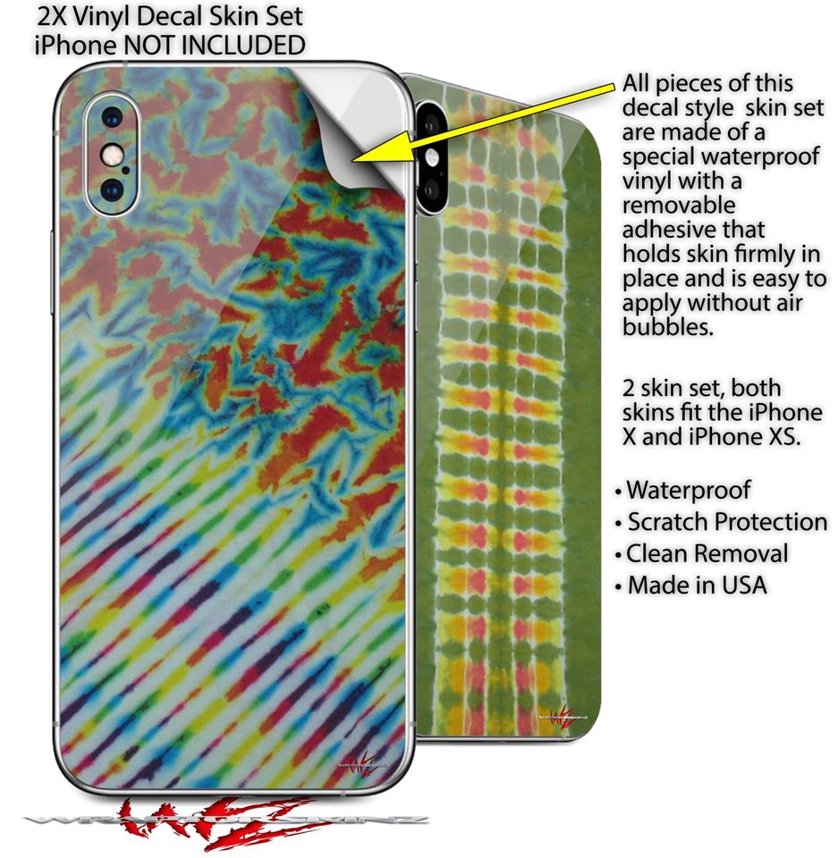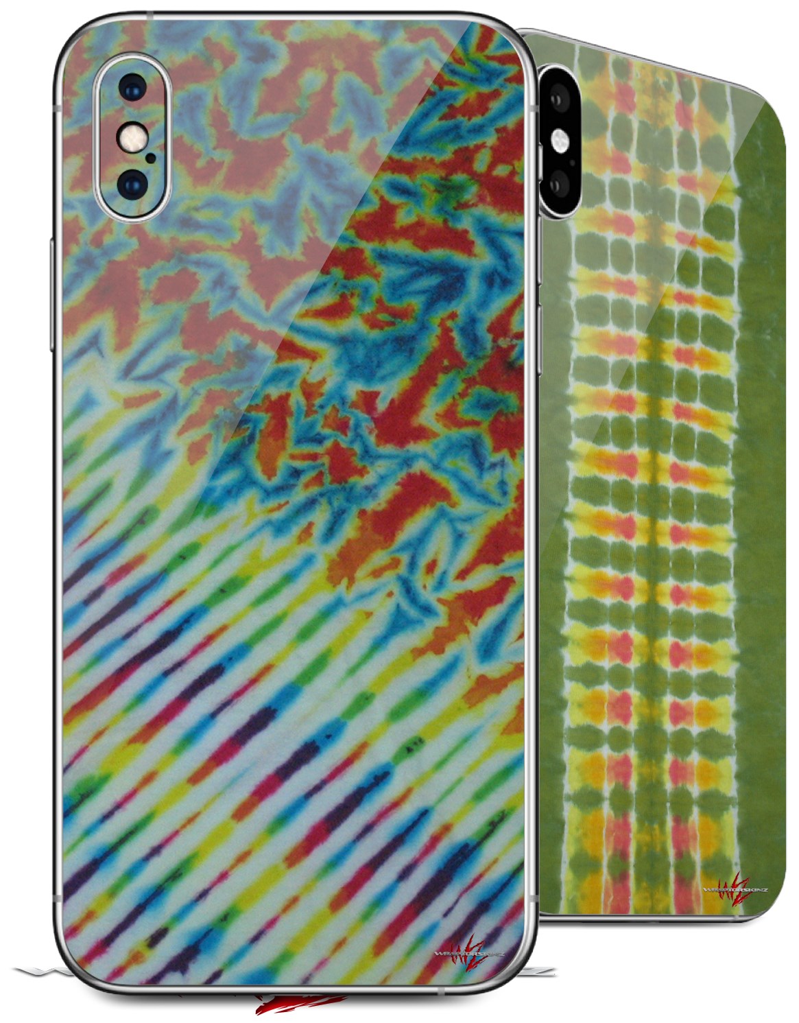 2 Decal style Skin Wraps set for Apple iPhone X and XS Tie Dye Mixed Rainbow