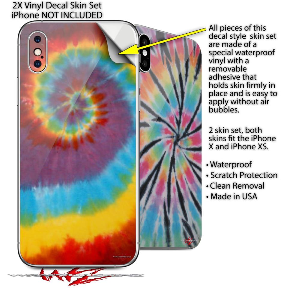 2 Decal style Skin Wraps set for Apple iPhone X and XS Tie Dye Swirl 108