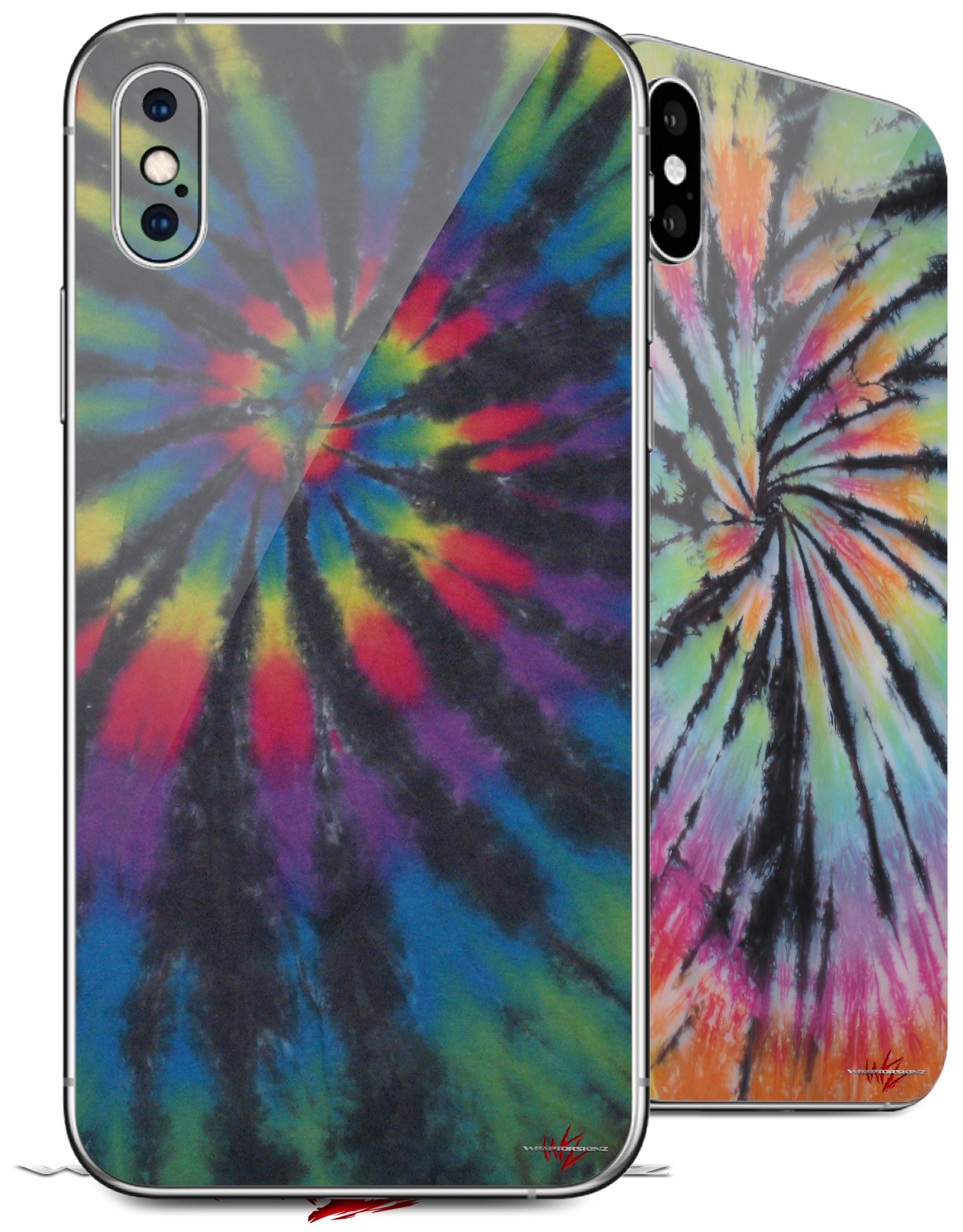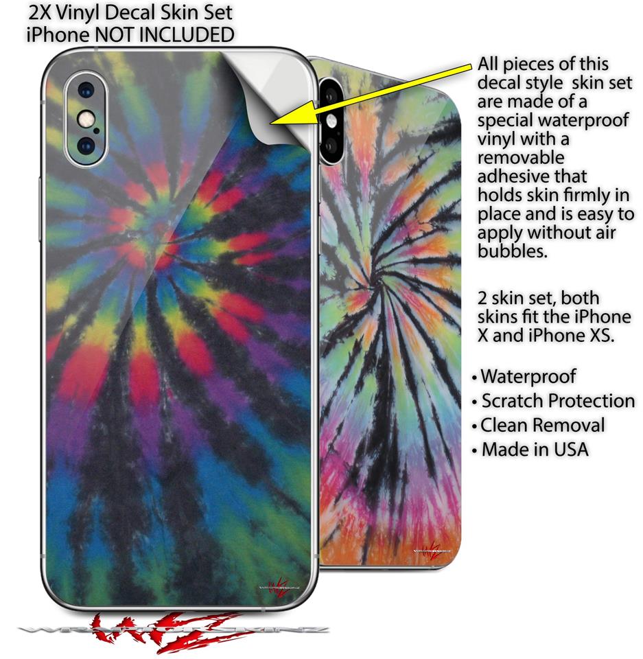 2 Decal style Skin Wraps set for Apple iPhone X and XS Tie Dye Swirl 105