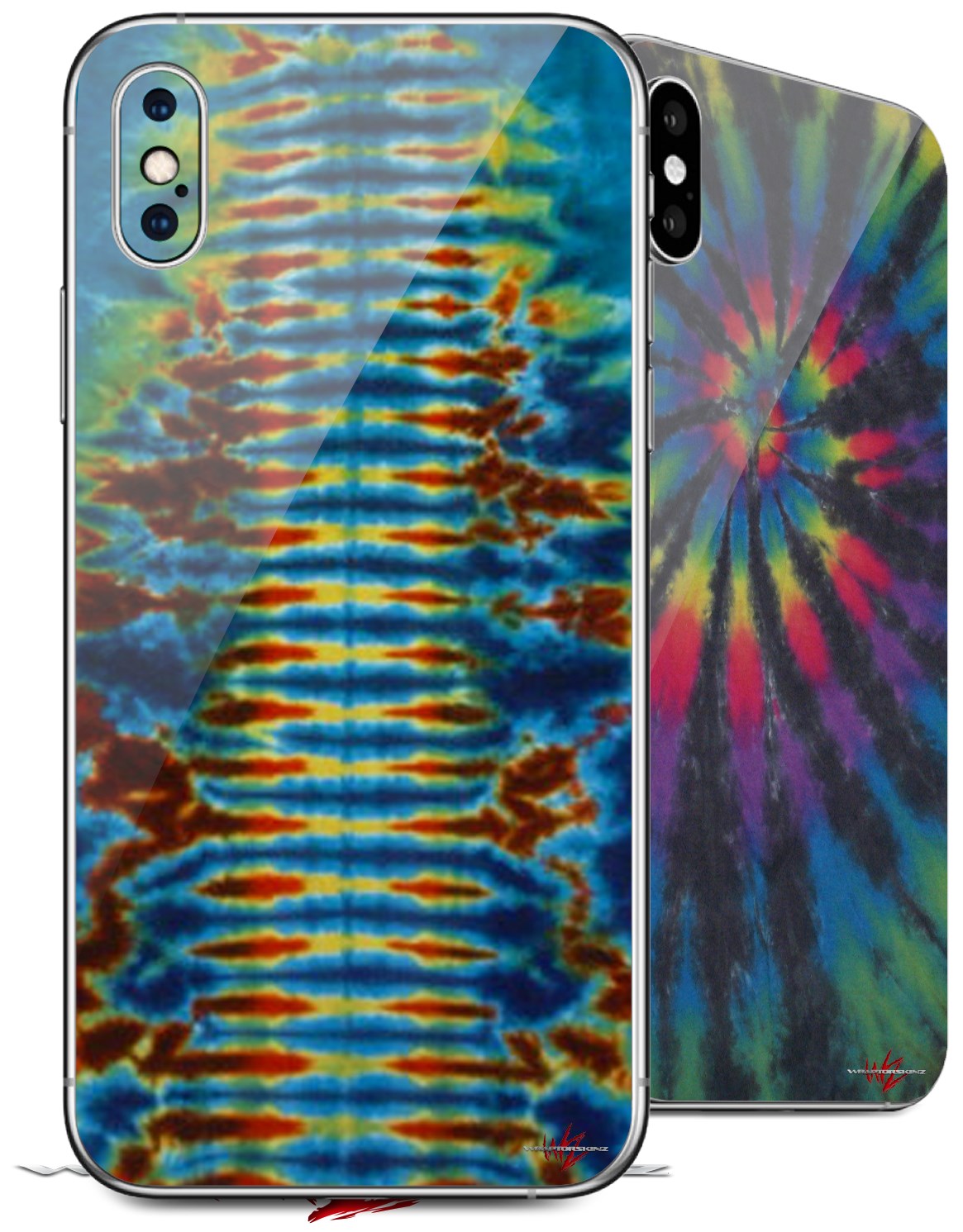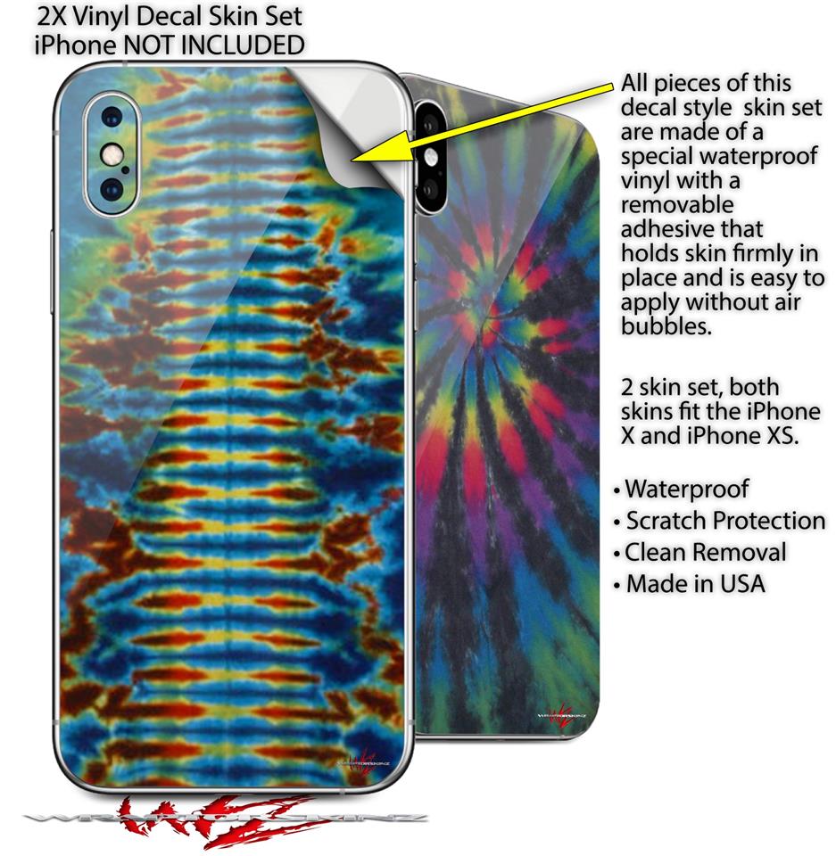 2 Decal style Skin Wraps set for Apple iPhone X and XS Tie Dye Spine 106