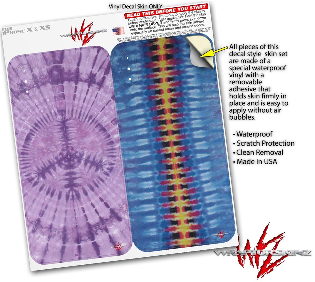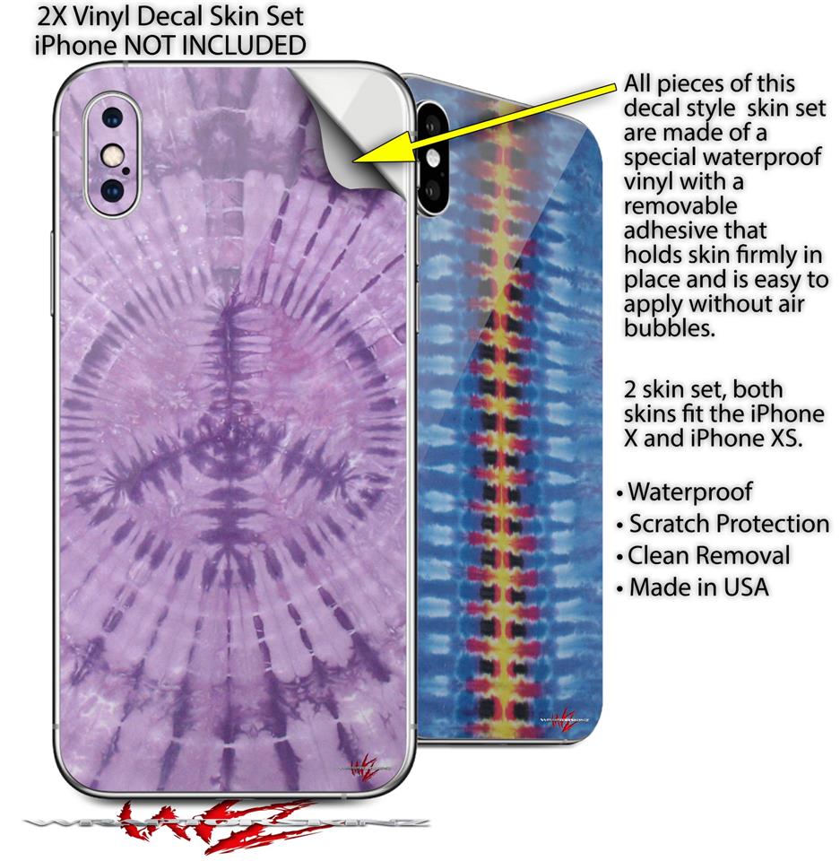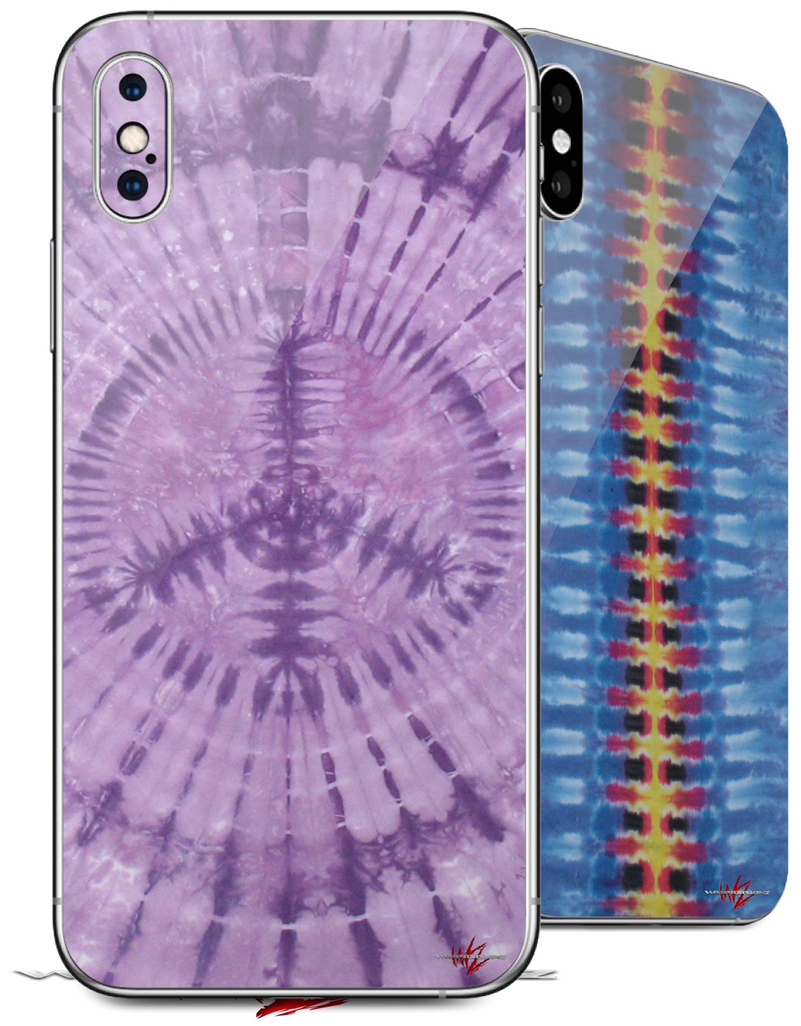 2 Decal style Skin Wraps set for Apple iPhone X and XS Tie Dye Peace Sign 112