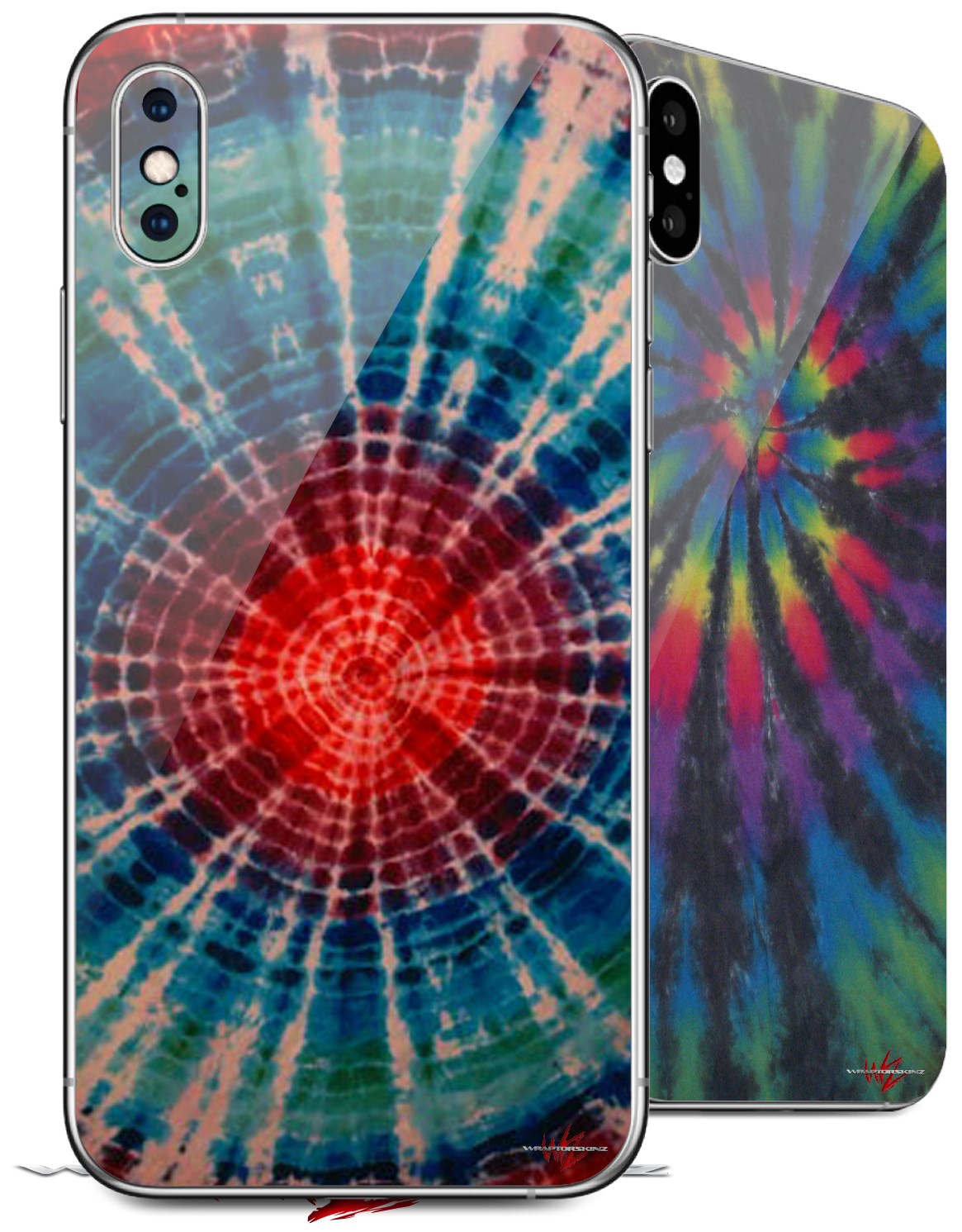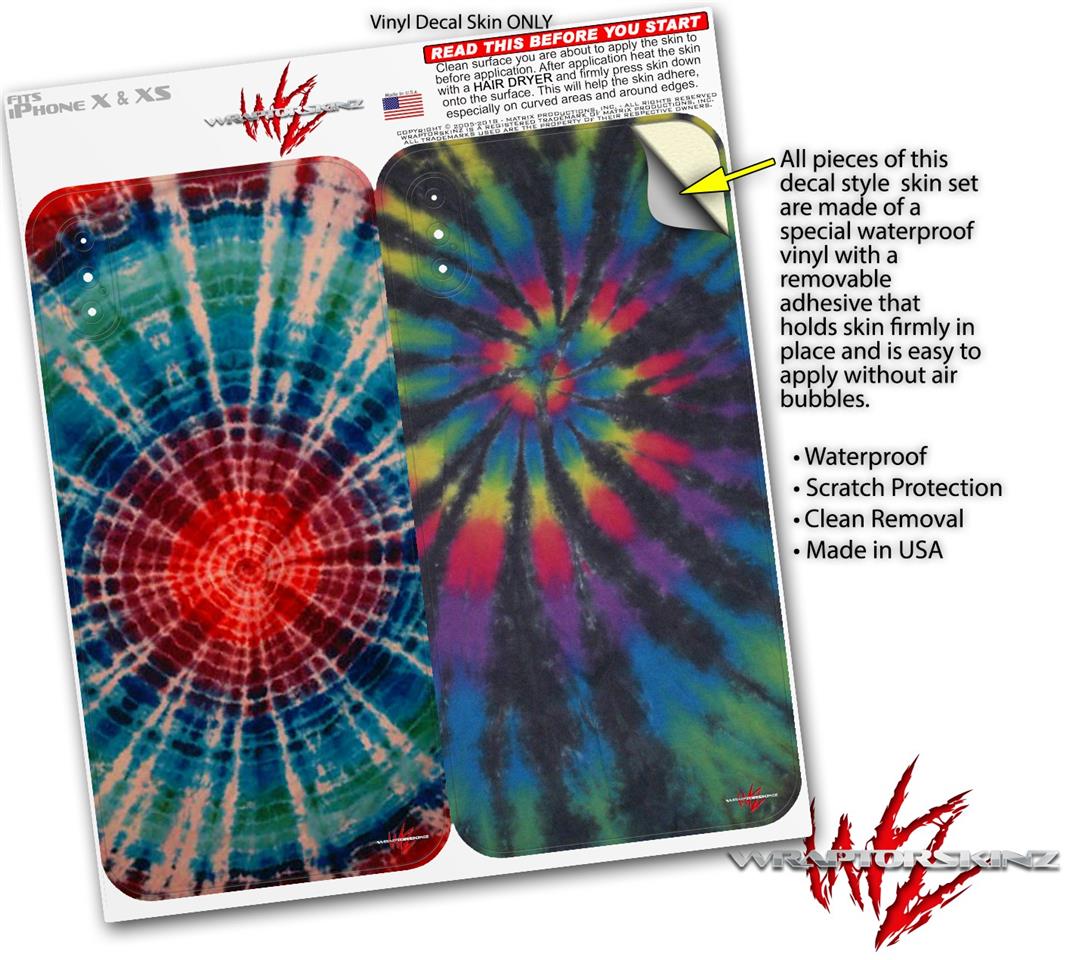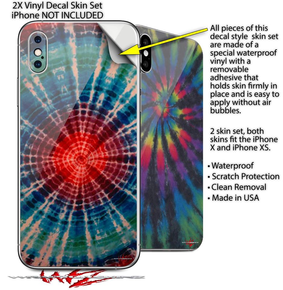 2 Decal style Skin Wraps set for Apple iPhone X and XS Tie Dye Bulls Eye 100