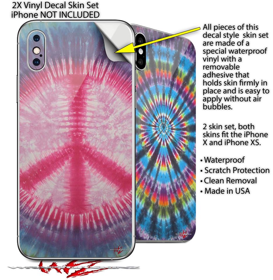 2 Decal style Skin Wraps set for Apple iPhone X and XS Tie Dye Peace Sign 108