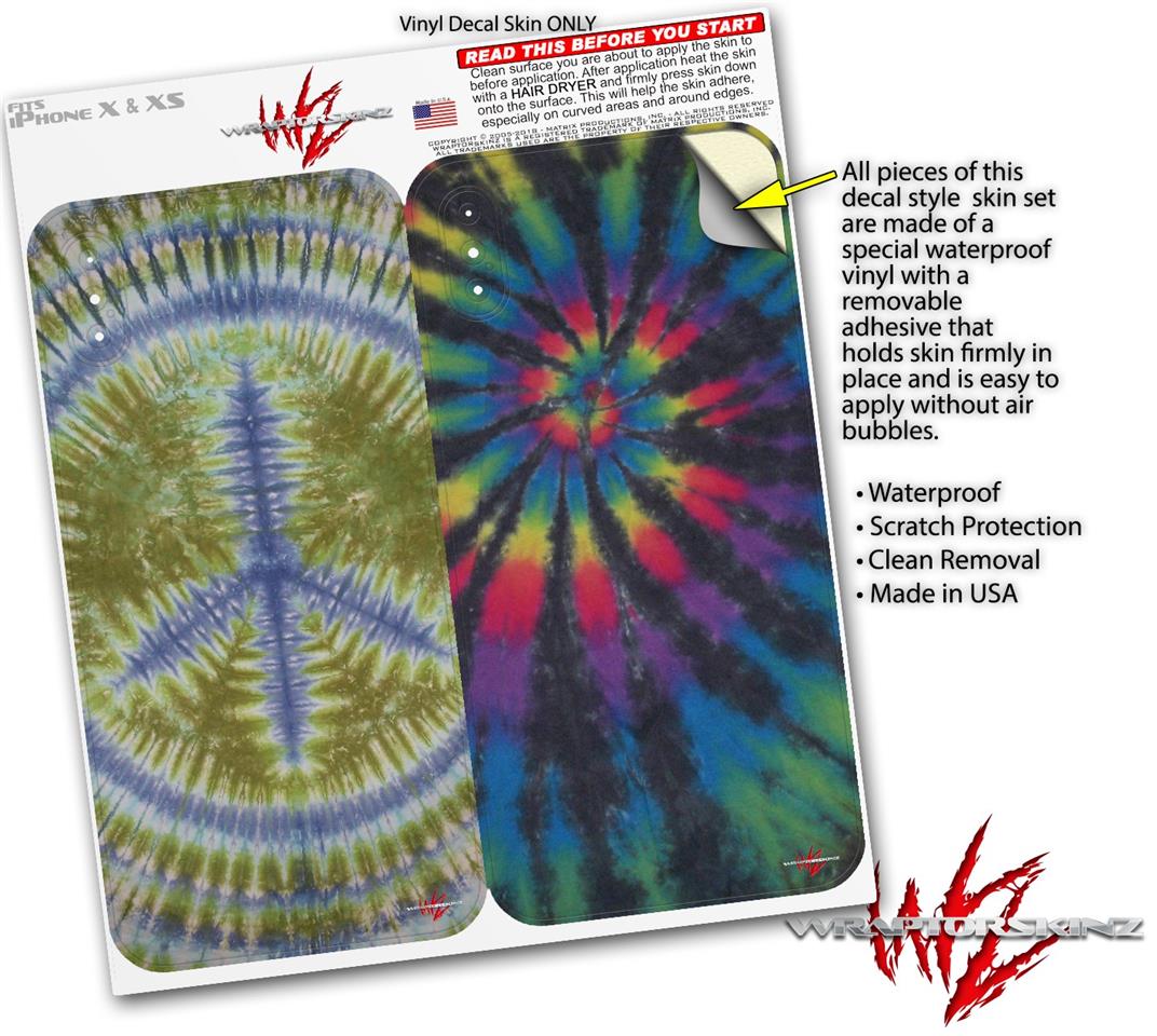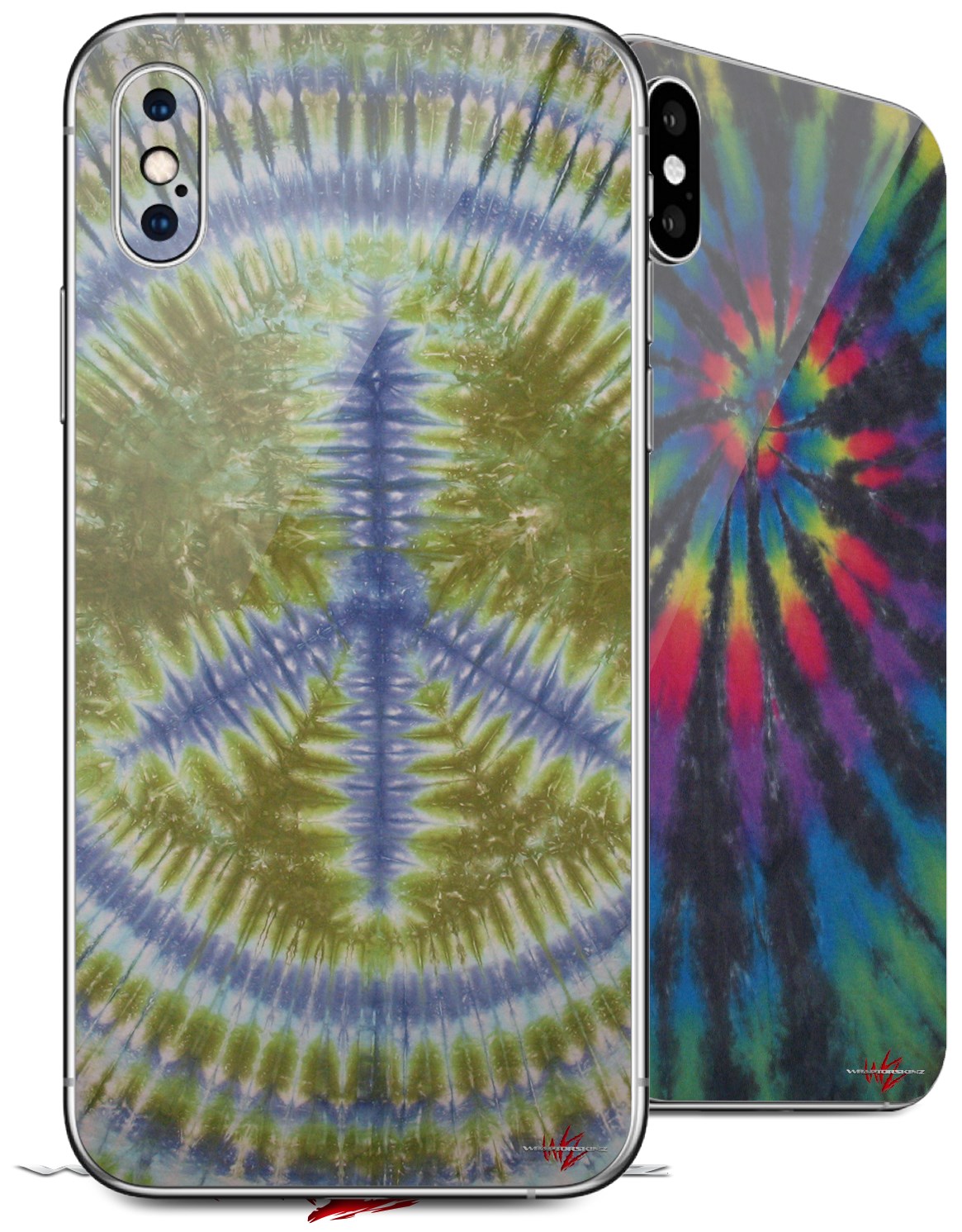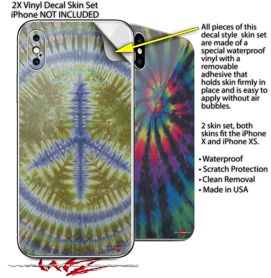 2 Decal style Skin Wraps set for Apple iPhone X and XS Tie Dye Peace Sign 102