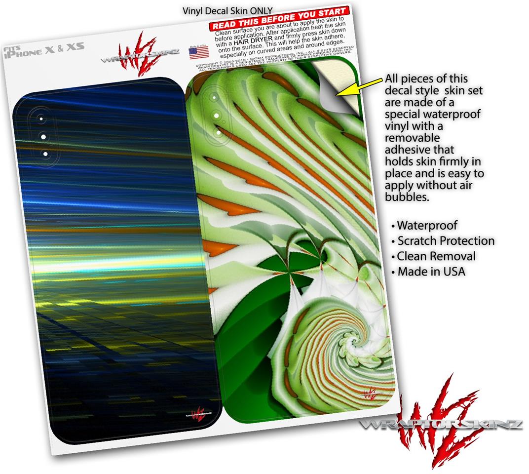 WraptorSkinz® skin wraps for the Apple iPhone X and iPhone XS (iPhone 10) are printed using superb photo quality designs and vibrant colors printed with special fade resistant inks that last even in direct sun for years. WraptorSkinz are a composite of two layers of commercial grade materials. The bottom layer is a soft, flexible vinyl with a special removable adhesive that is easily positioned, applied without air bubbles. Next, we print the bottom layer with UV protected, fade resistant inks that deliver superb photo quality designs in vibrant colors. Finally, we bond a professional grade laminate over the entire iPhone XS skin adding a glossy protective finish. This product is not affiliated with or endorsed by Apple.