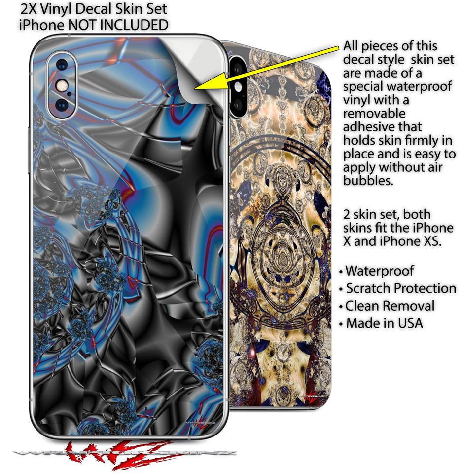 2 Decal style Skin Wraps set for Apple iPhone X and XS Broken Plastic