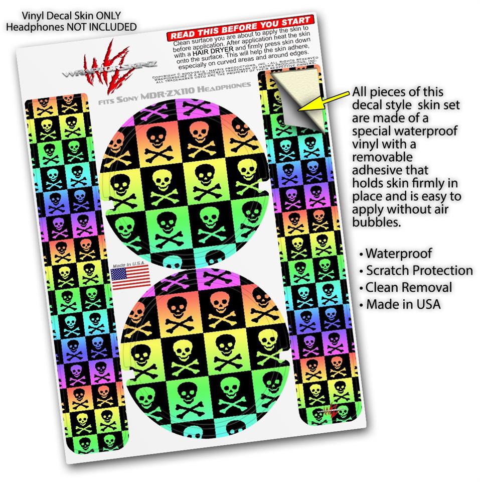 Decal style Skin Wrap for Sony MDR ZX110 Headphones Skull Checkers Rainbow (HEADPHONES NOT INCLUDED)