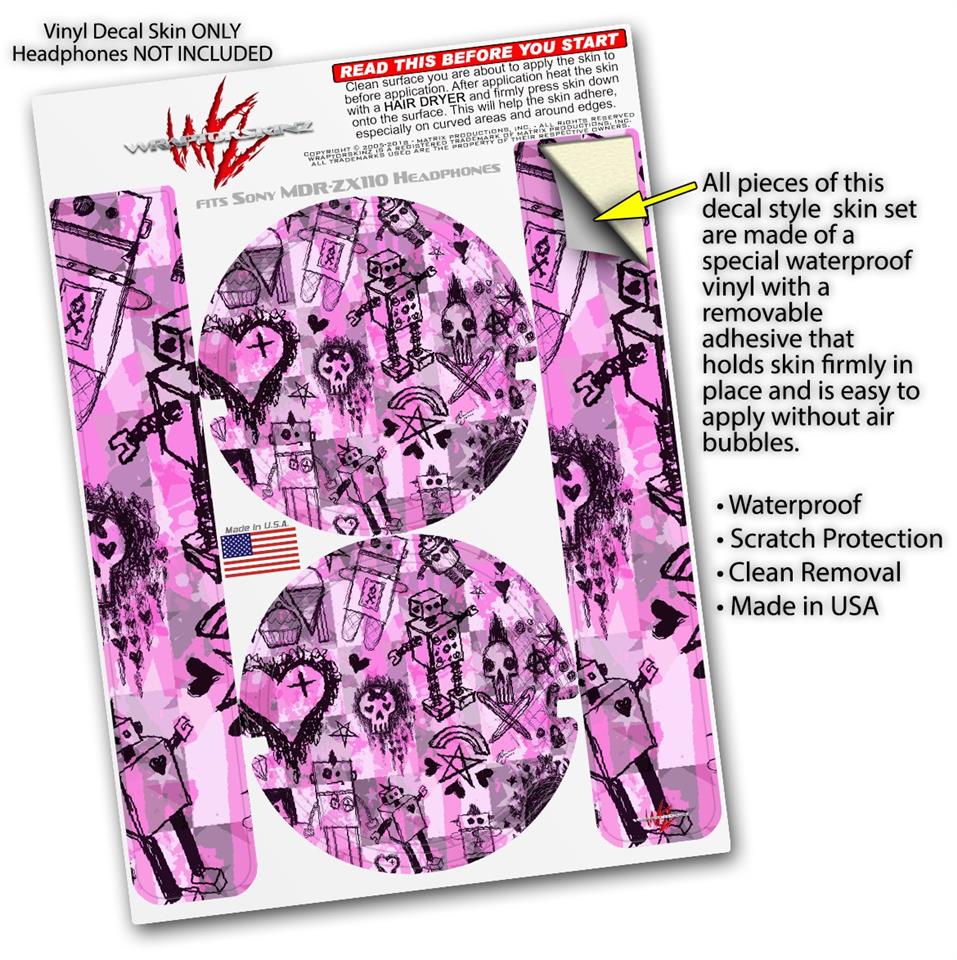 Decal style Skin Wrap for Sony MDR ZX110 Headphones Scene Kid Sketches Pink (HEADPHONES NOT INCLUDED)