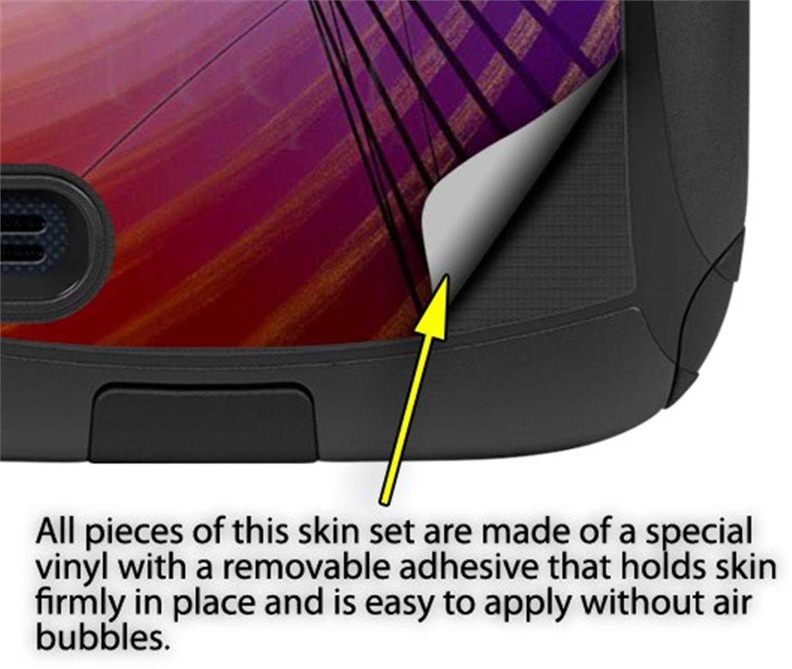 WraptorSkinz® are self adhering vinyl decal style skins and are a great way to add a new look to your protective case. WraptorSkinz® are a composite of two layers of commercial grade materials. The bottom layer is a soft, flexible vinyl with a special removable adhesive that is easily positioned, applied without air bubbles. Next we print the bottom layer with UV protected, fade resistant inks that deliver superb photo quality designs in vibrant colors. Finally we bond a professional grade laminate over the entire skin adding a glossy protective finish.