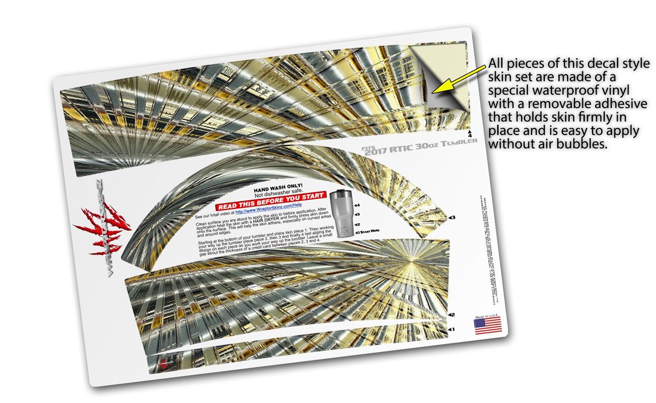 WraptorSkinz® skin wraps for 2017 RTIC Tumblers are printed using superb photo quality designs and vibrant colors printed with special fade resistant inks that last even in direct sun for years. WraptorSkinz® are a composite of two layers of commercial grade materials. The bottom layer is a soft, flexible vinyl with a special removable adhesive that is easily positioned, applied without air bubbles. Next we print the bottom layer with UV protected, fade resistant inks that deliver superb photo quality designs in vibrant colors. Finally we bond a professional grade laminate over the entire skin adding a glossy protective finish.