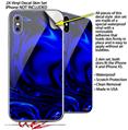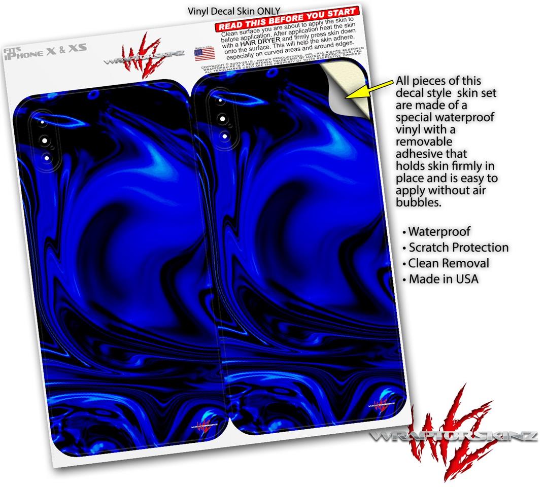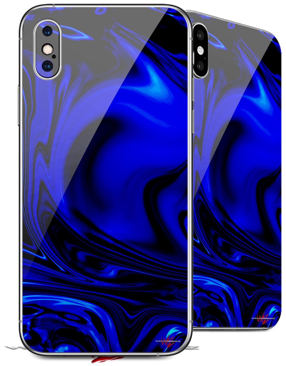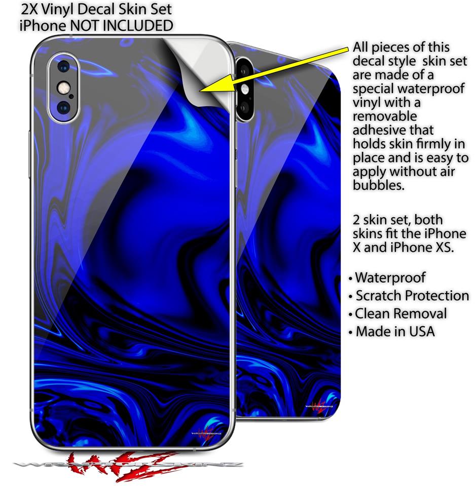 2 Decal style Skin Wraps set compatible with Apple iPhone X and XS Liquid Metal Chrome Royal Blue