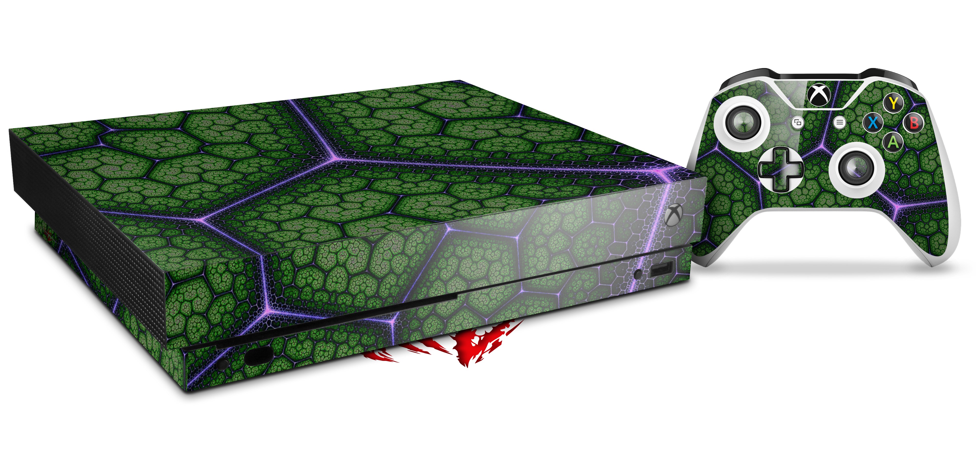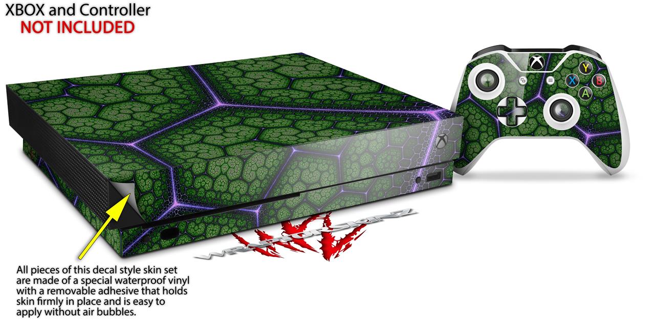 Skin Wrap compatible with XBOX One X Console and Controller Linear Cosmos Green