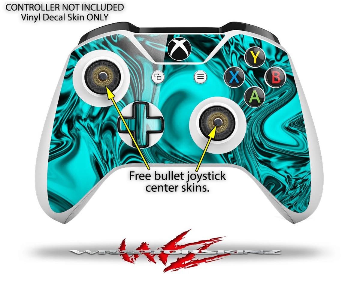 WraptorSkinz Decal Skin Wrap Set works with 2016 and newer XBOX One S Console and 2 Controllers Liquid Metal Chrome Neon Teal